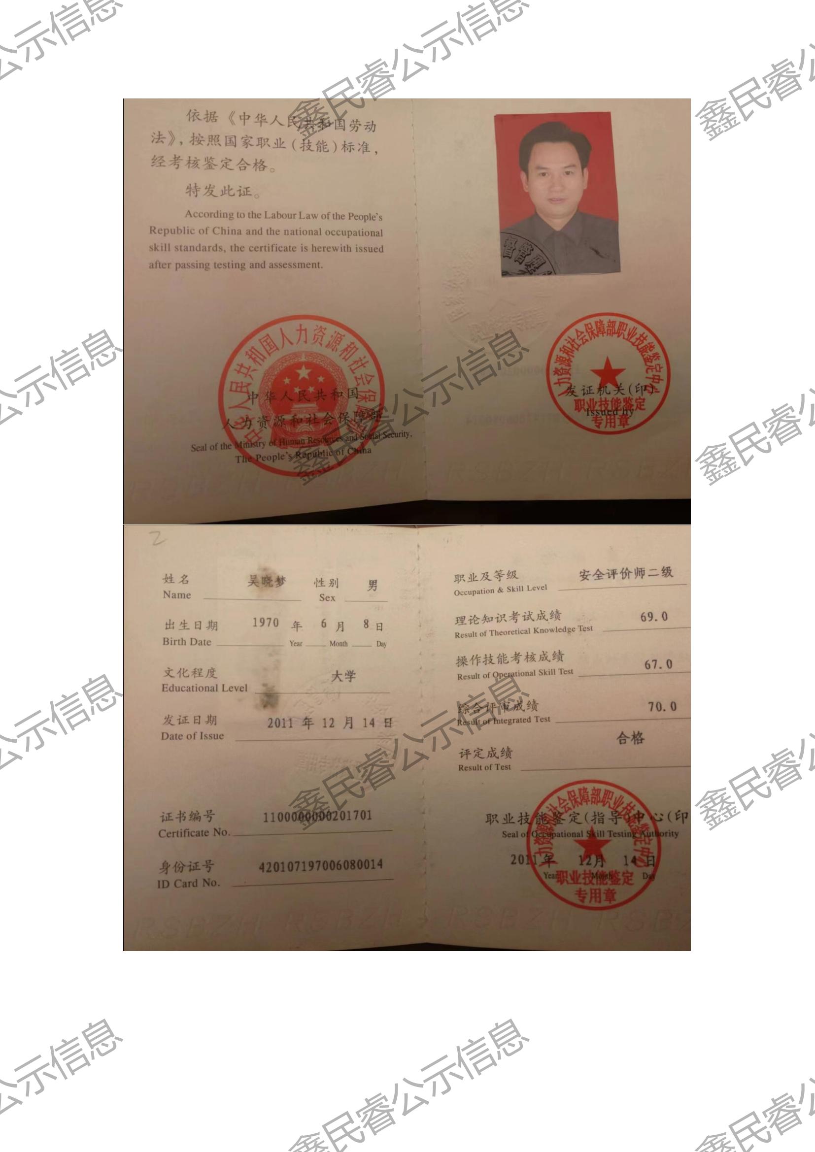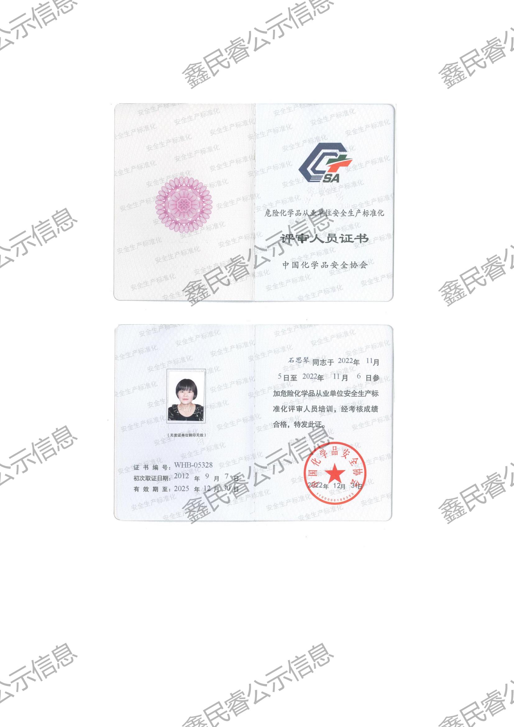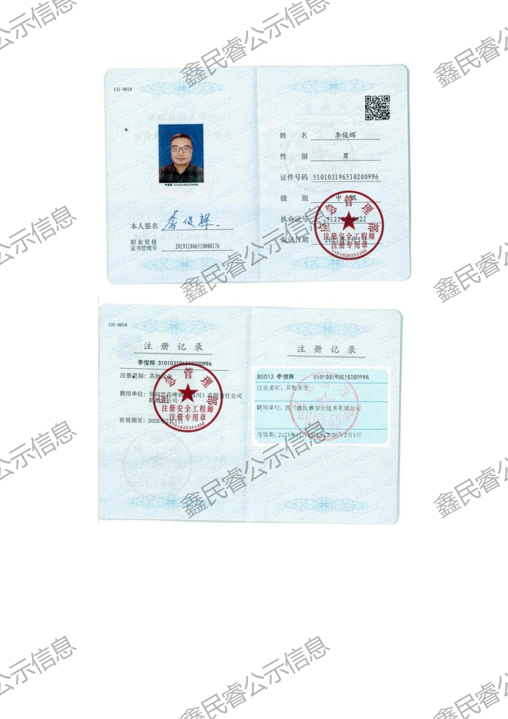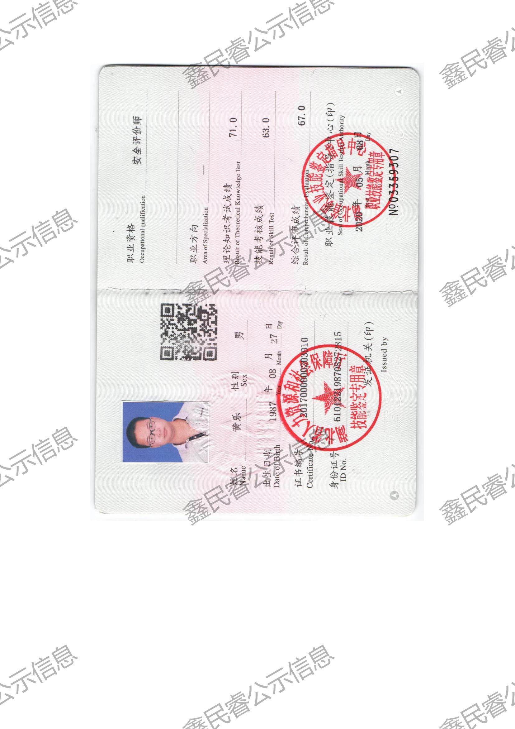 我公司鑫民睿专职安全评价师、注册安全工程师信息公示: