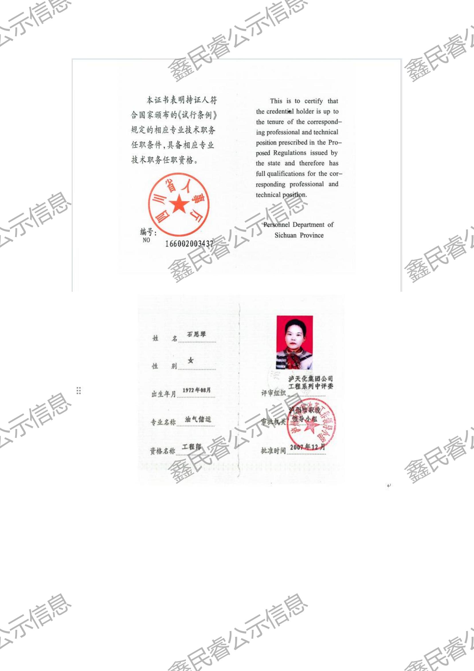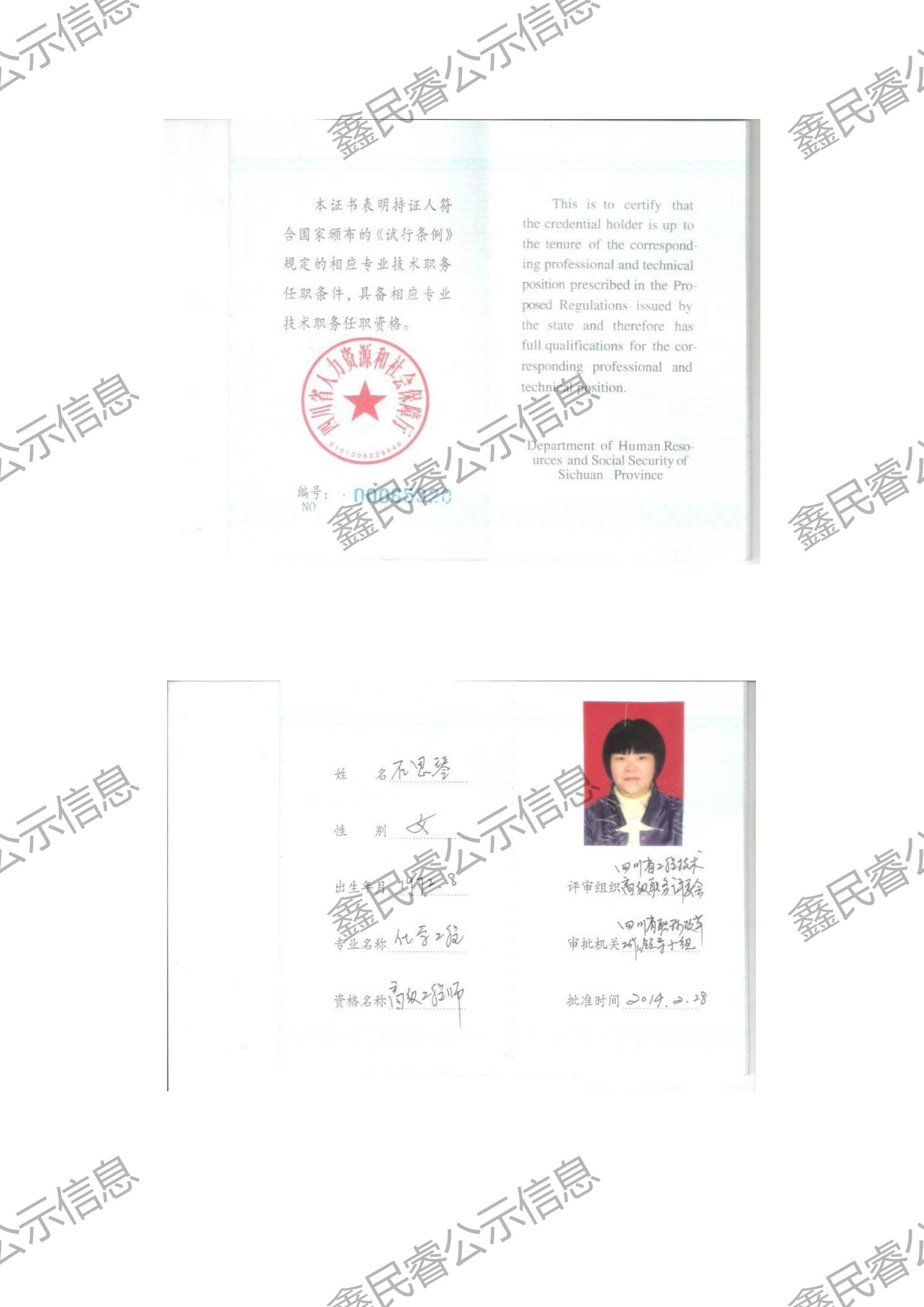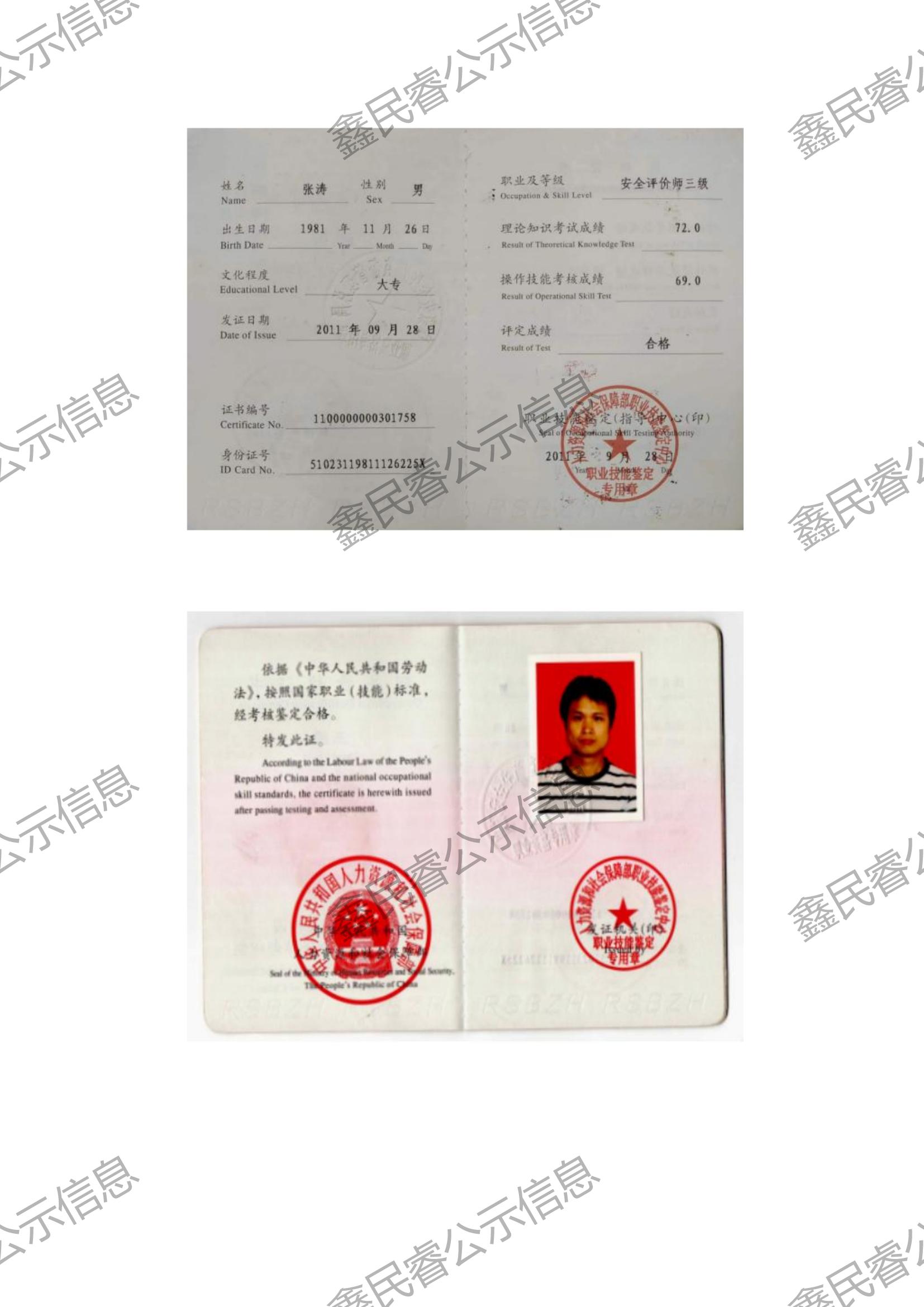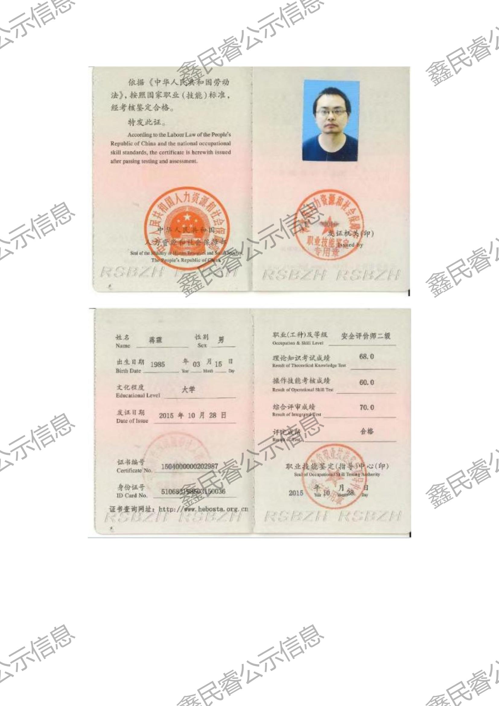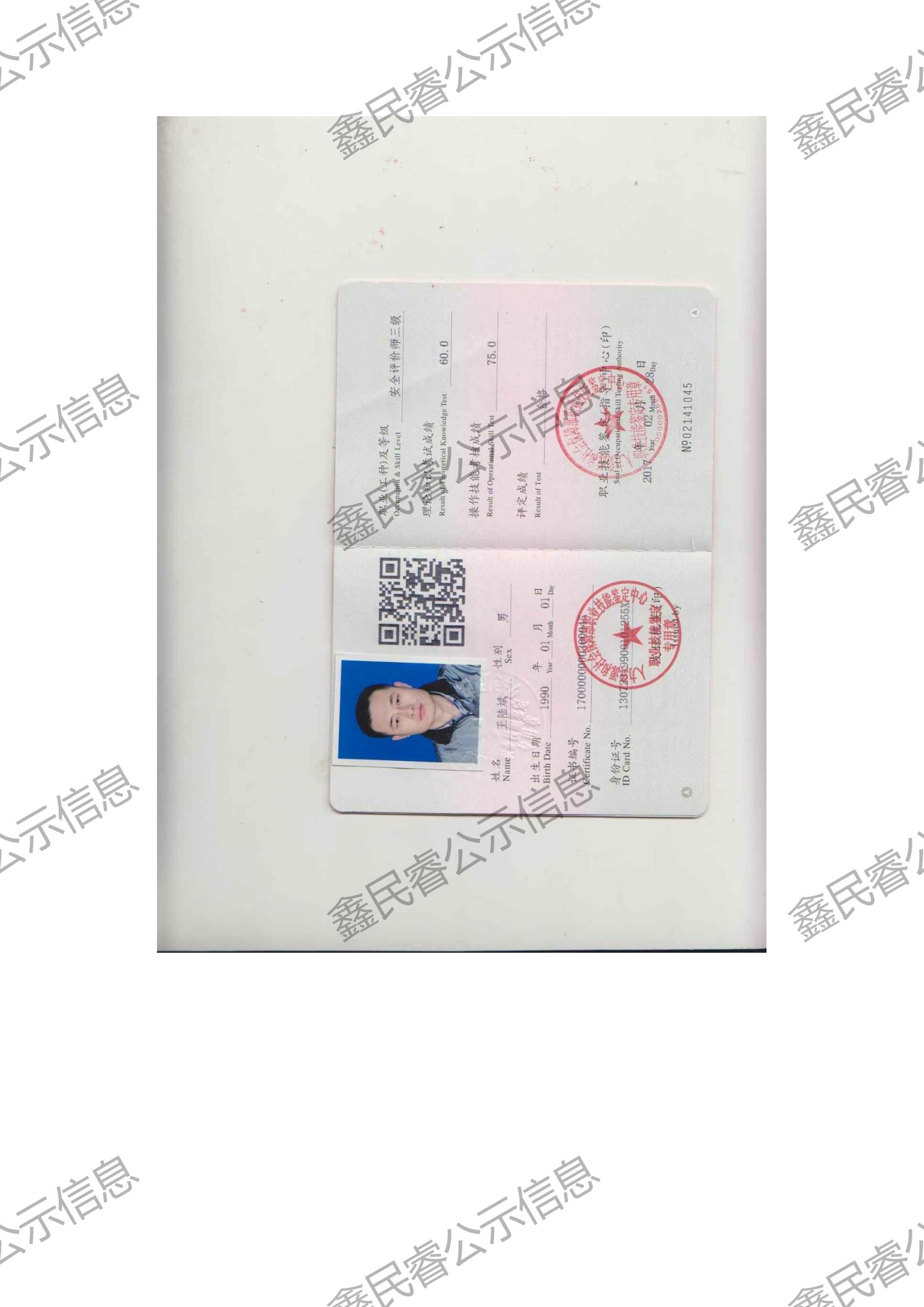 我公司鑫民睿专职安全评价师、注册安全工程师信息公示: