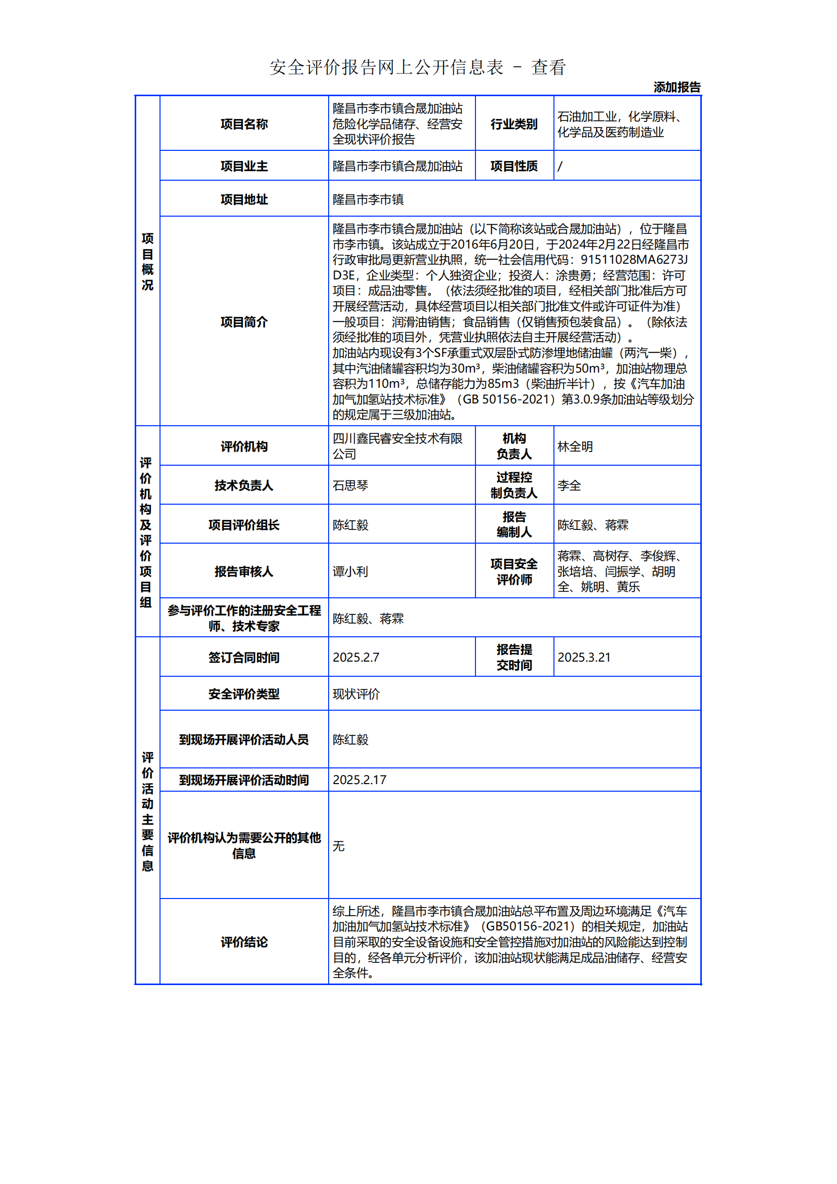 171隆昌市李市镇合晟加油站危险化学品储存、经营安全现状评价报告