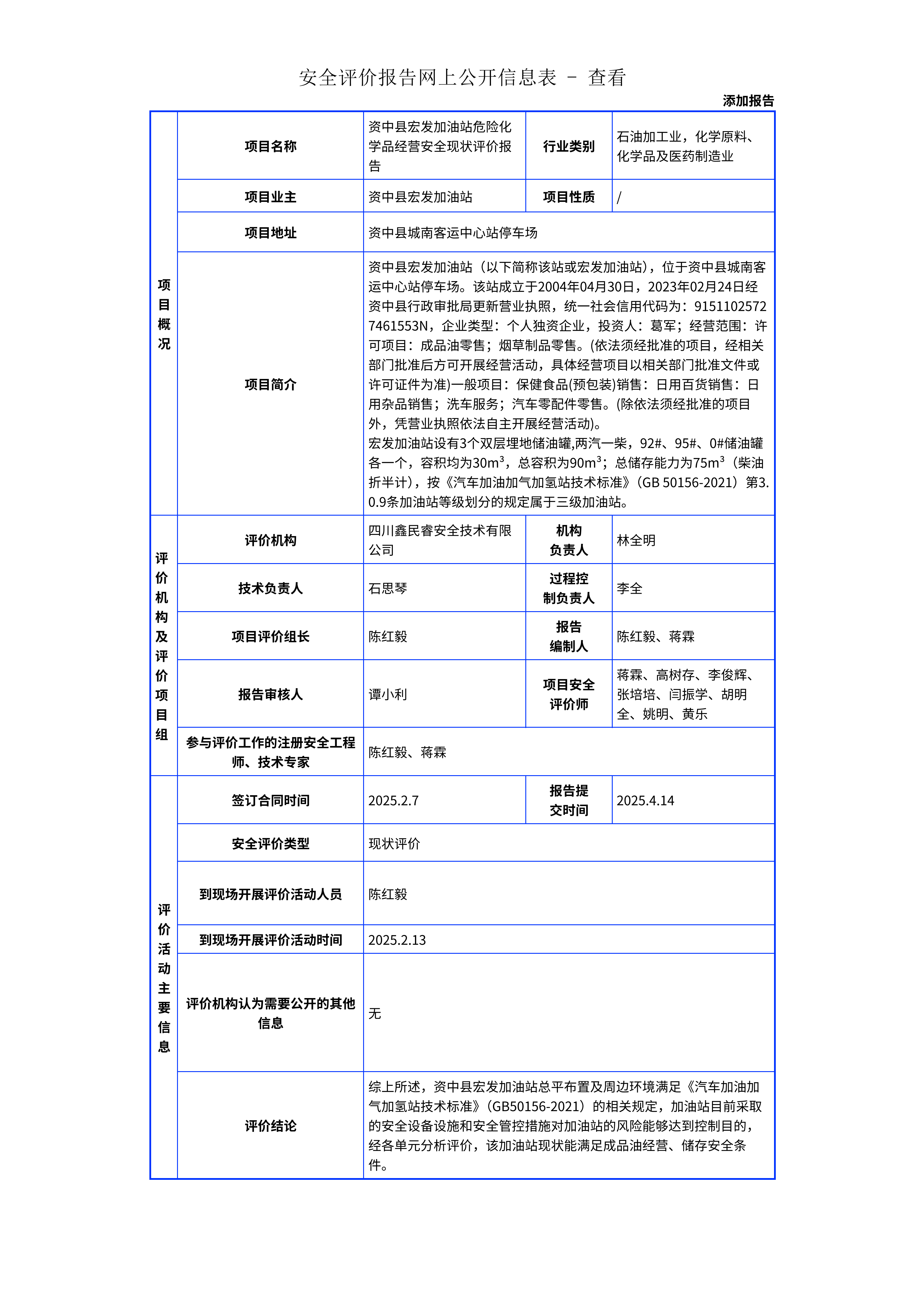 185资中县宏发加油站危险化学品经营安全现状评价报告
