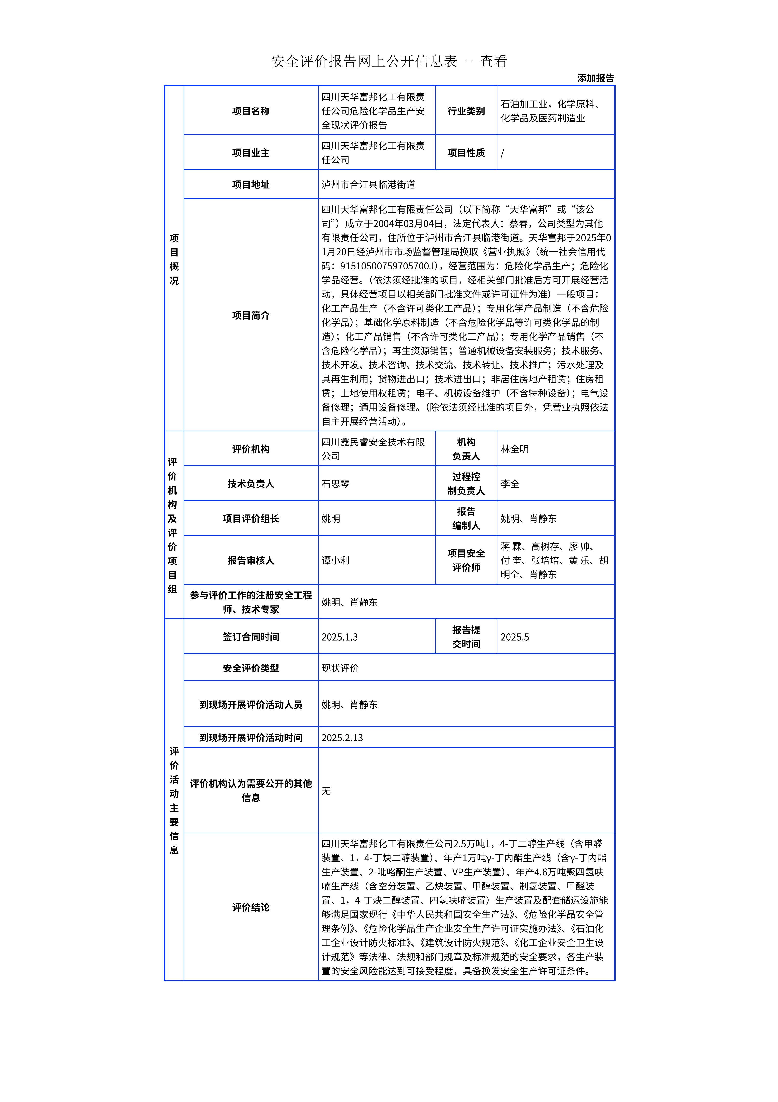 222四川天华富邦化工有限责任公司危险化学品生产安全现状评价报告