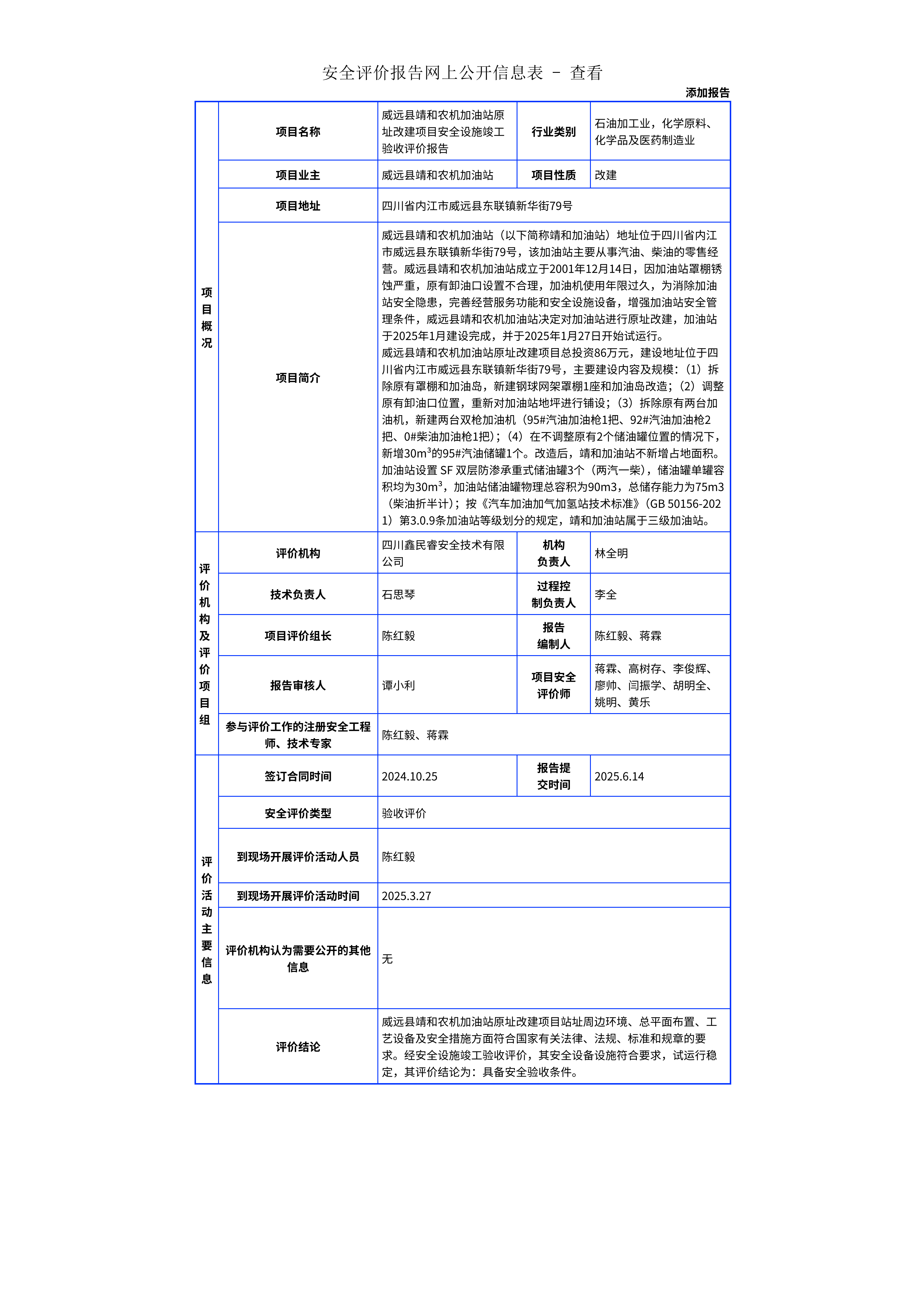 226威远县靖和农机加油站原址改建项目安全设施竣工验收评价报告