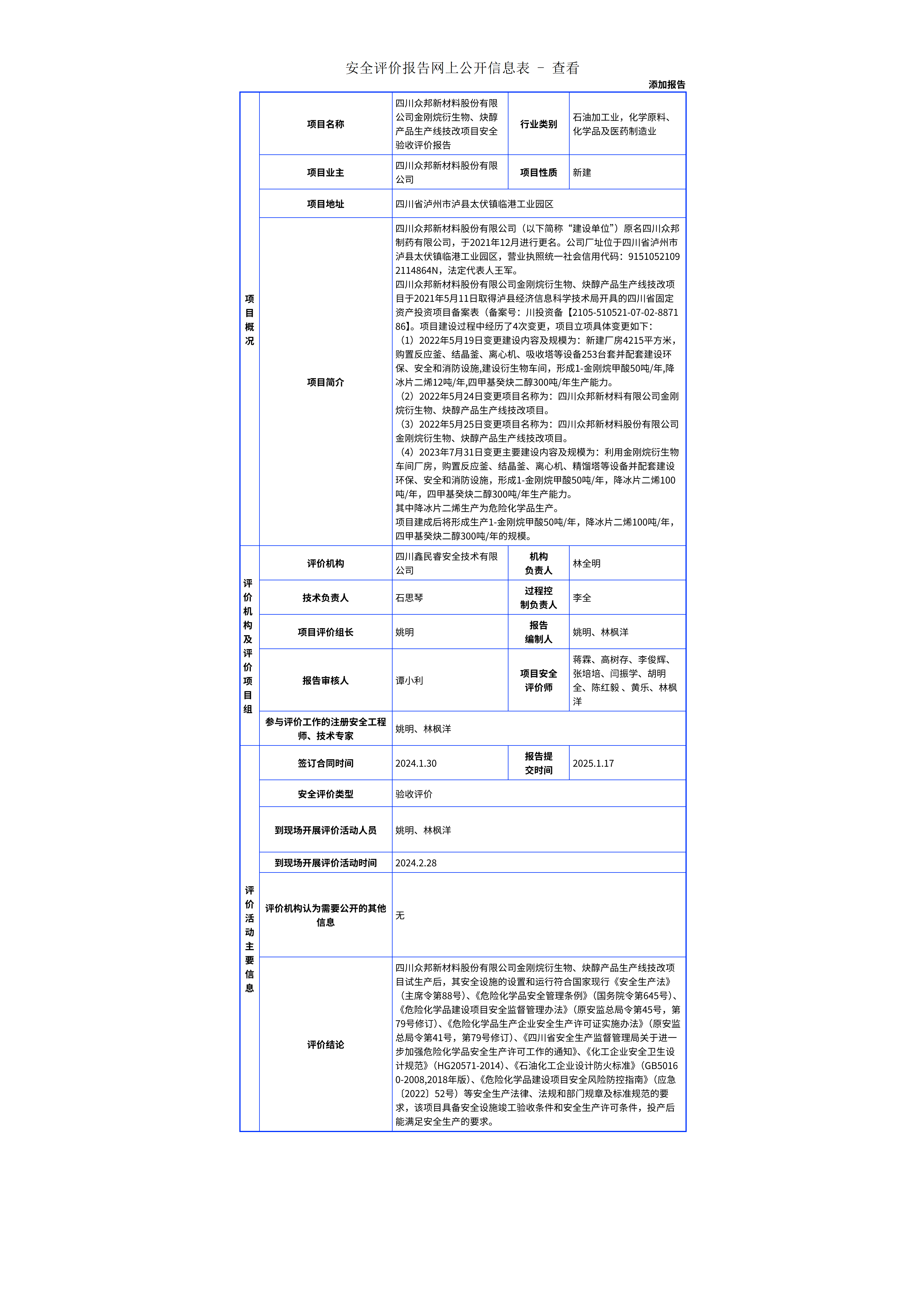 257四川众邦新材料股份有限公司金刚烷衍生物、炔醇产品生产线技改项目安全验收评价报告