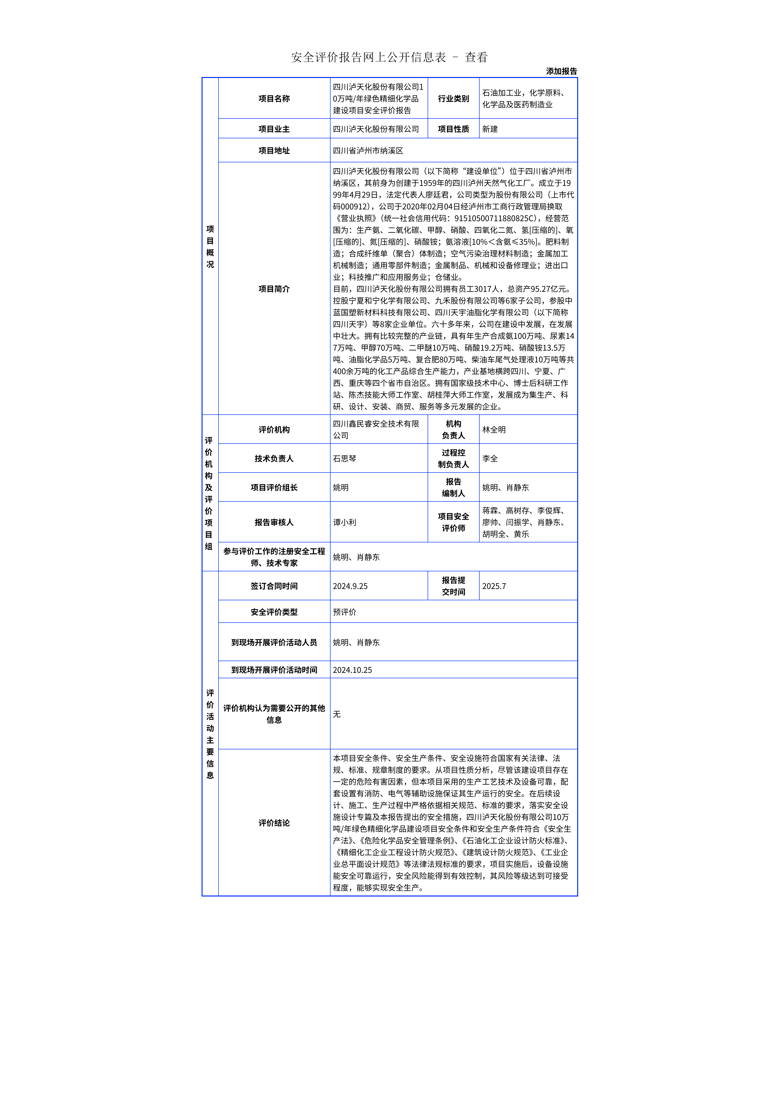 259四川泸天化股份有限公司10万吨年绿色精细化学品建设项目安全评价报告