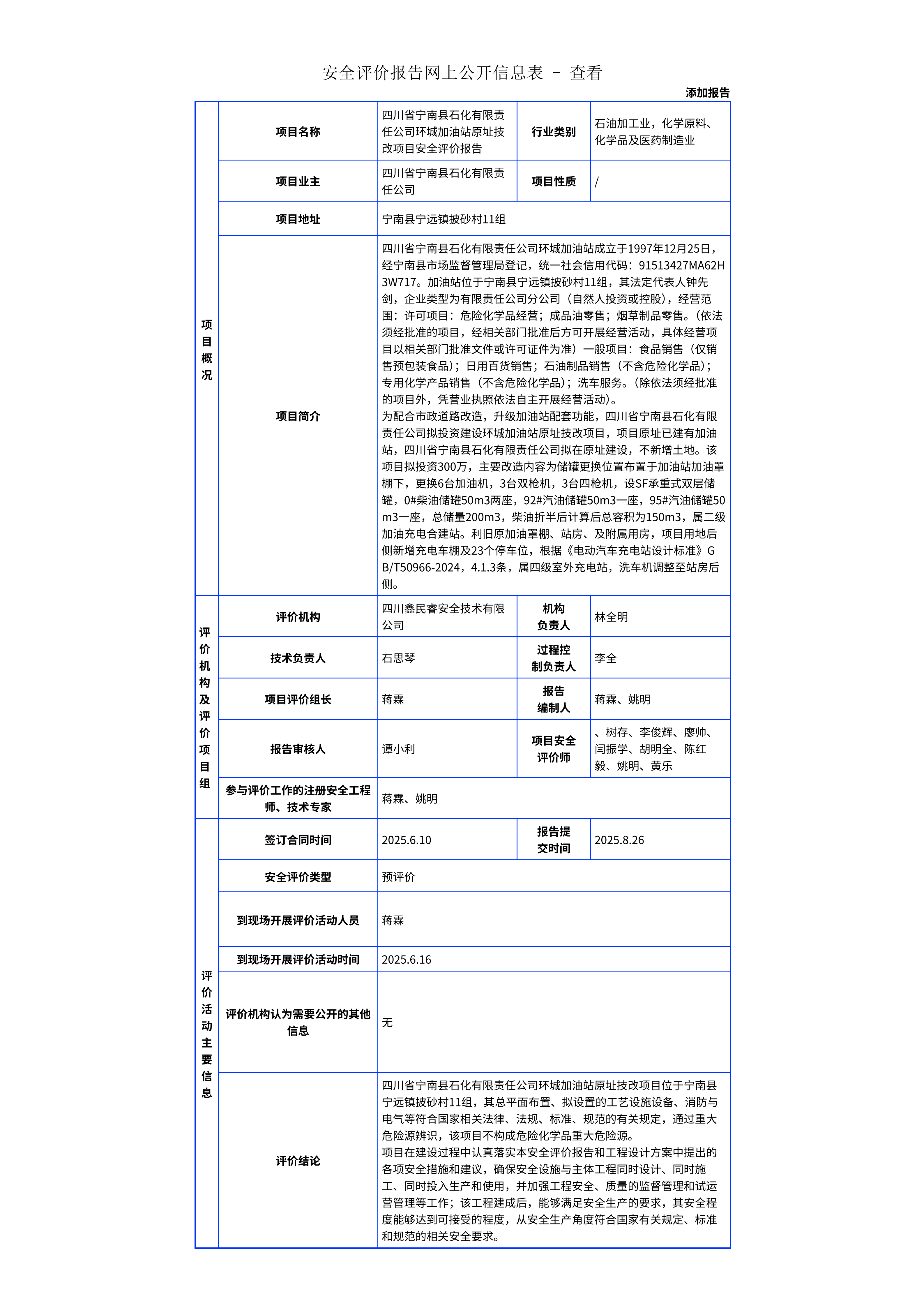 267四川省宁南县石化有限责任公司环城加油站原址技改项目安全评价报告