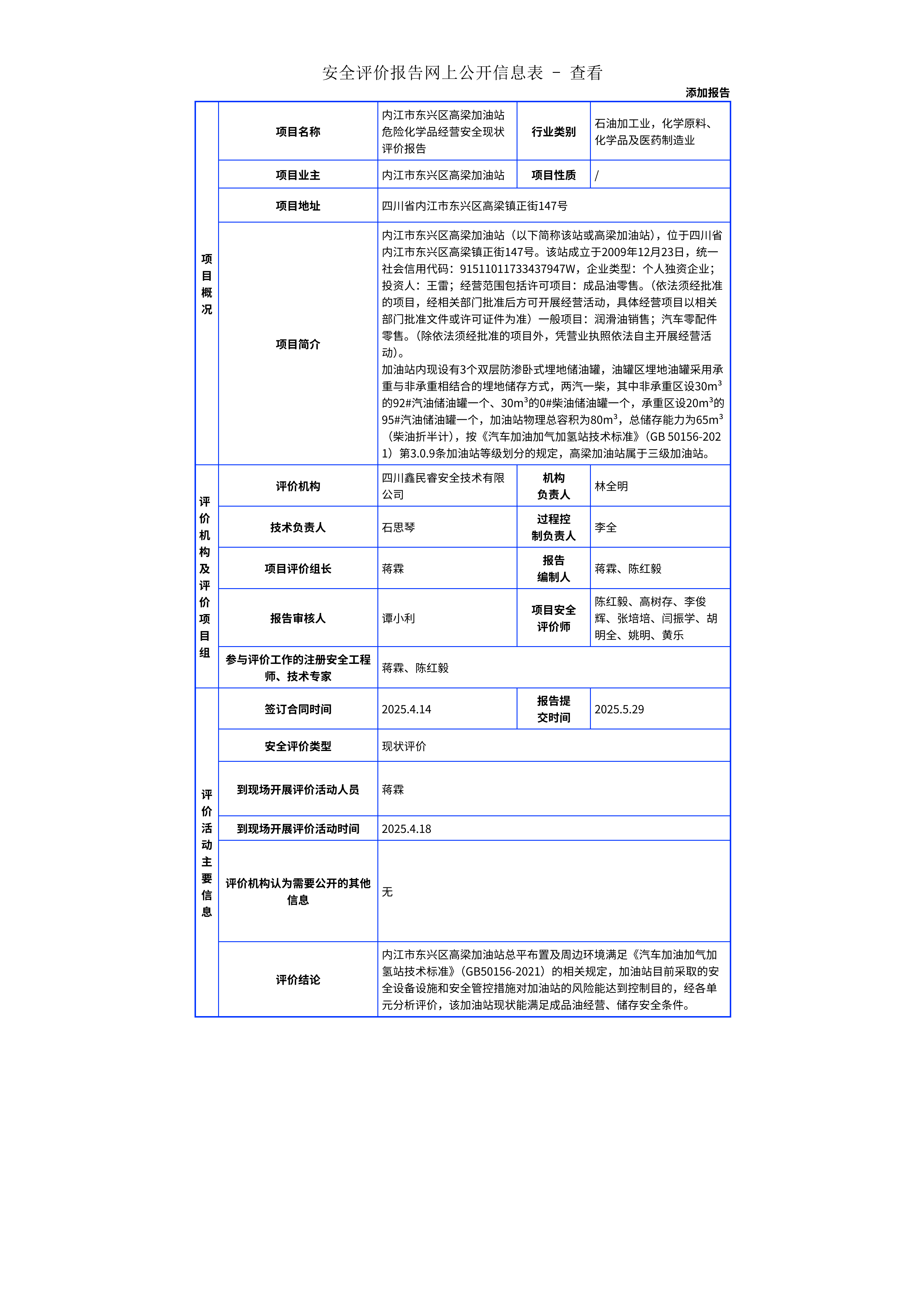 280内江市东兴区高梁加油站危险化学品经营安全现状评价报告