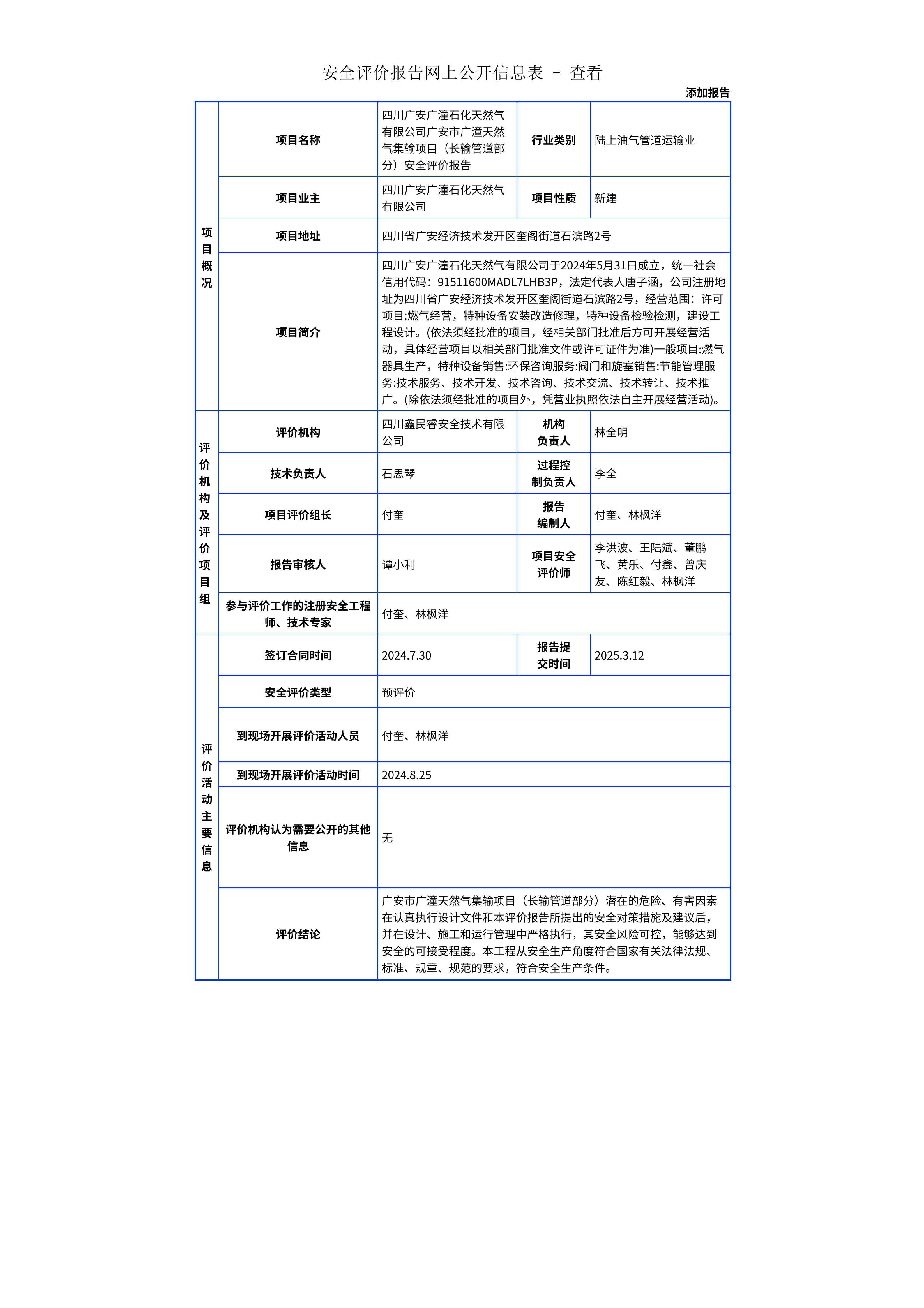 284四川广安广潼石化天然气有限公司广安市广潼天然气集输项目(长输管道部分)安全评价报告