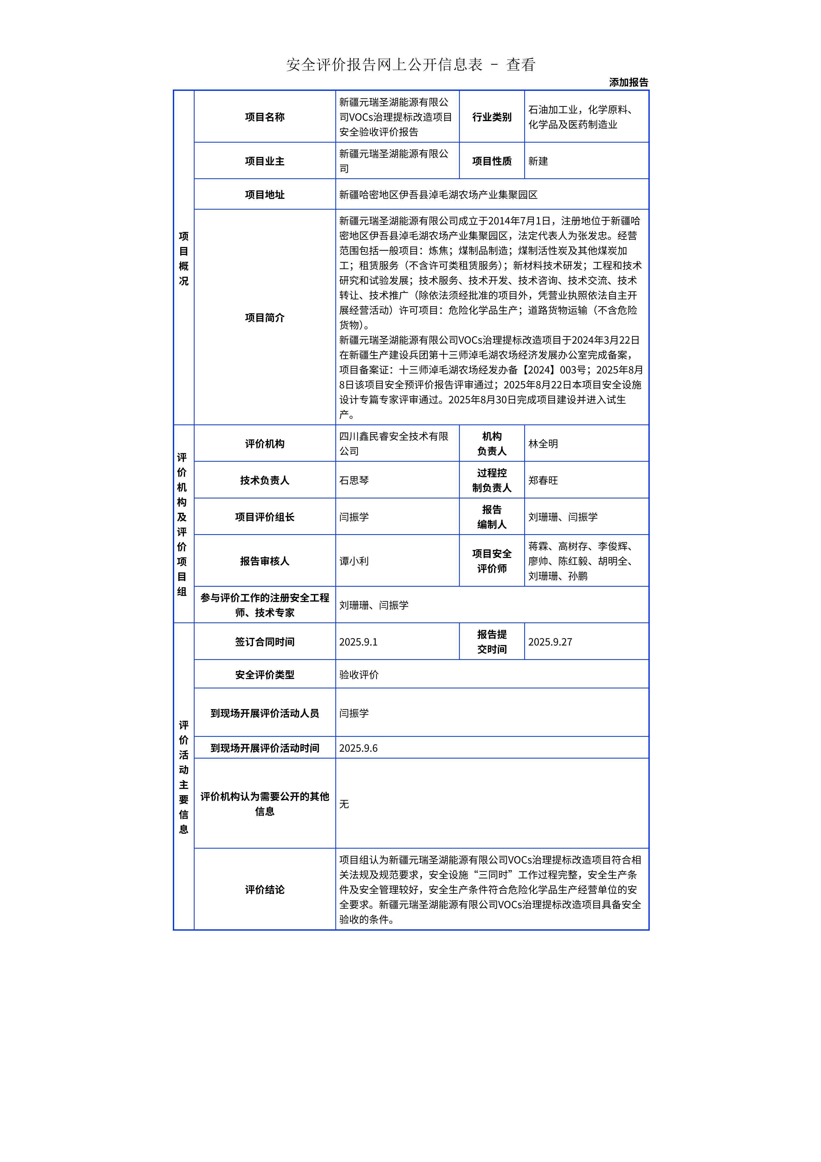 293新疆元瑞圣湖能源有限公司VOCs治理提标改造项目安全验收评价报告