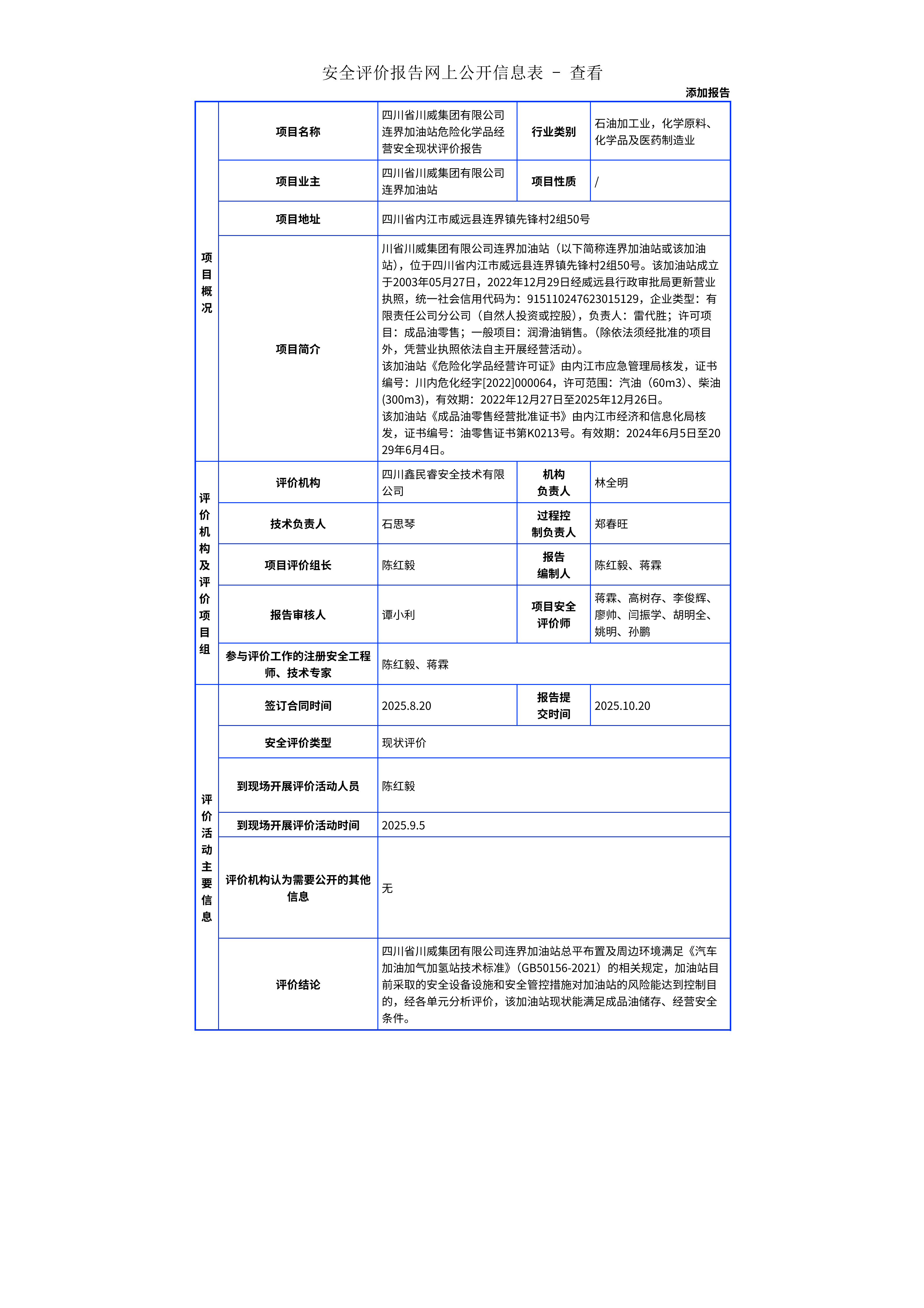 305四川省川威集团有限公司连界加油站危险化学品经营安全现状评价报告