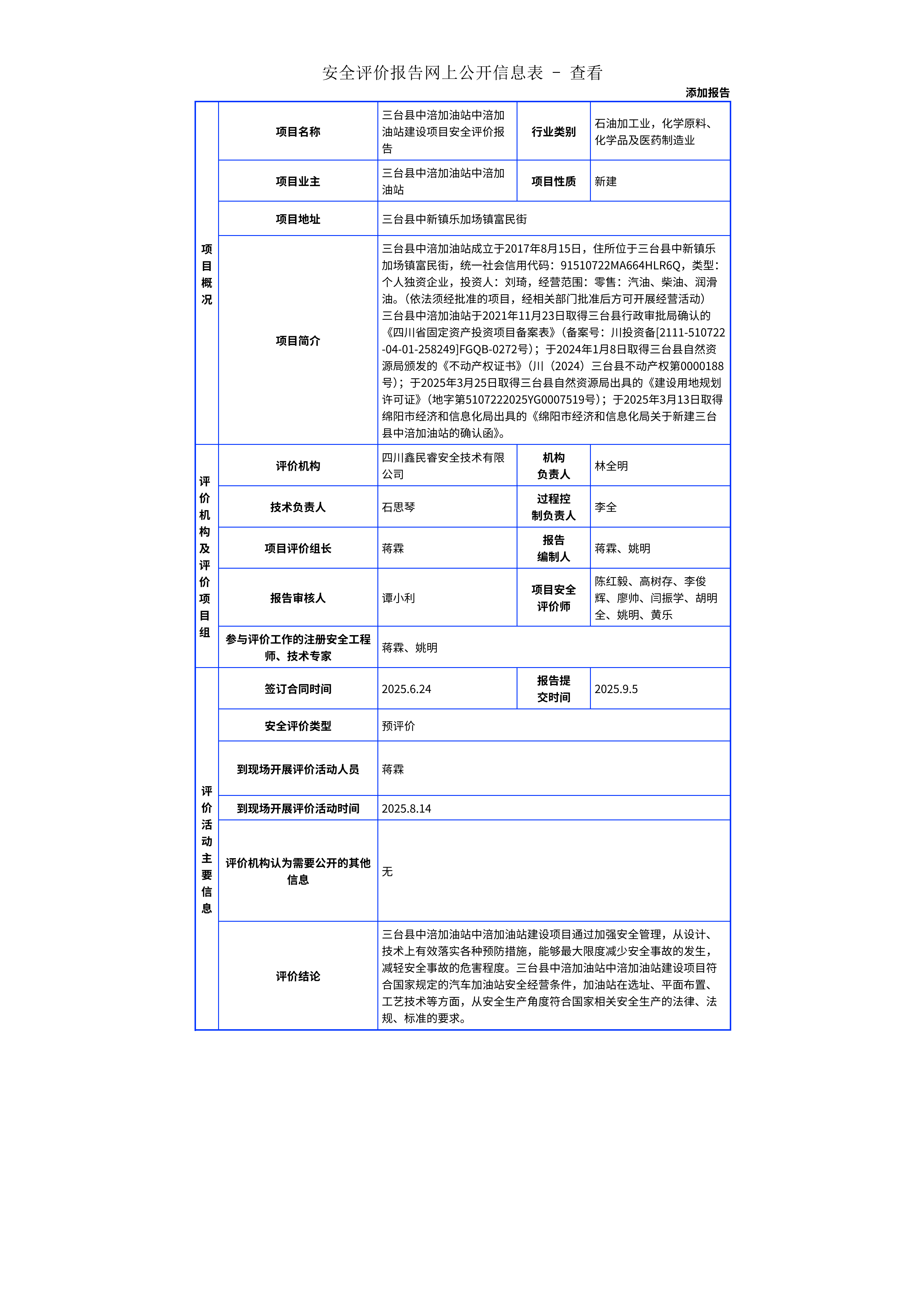 321三台县中涪加油站中涪加油站建设项目安全评价报告
