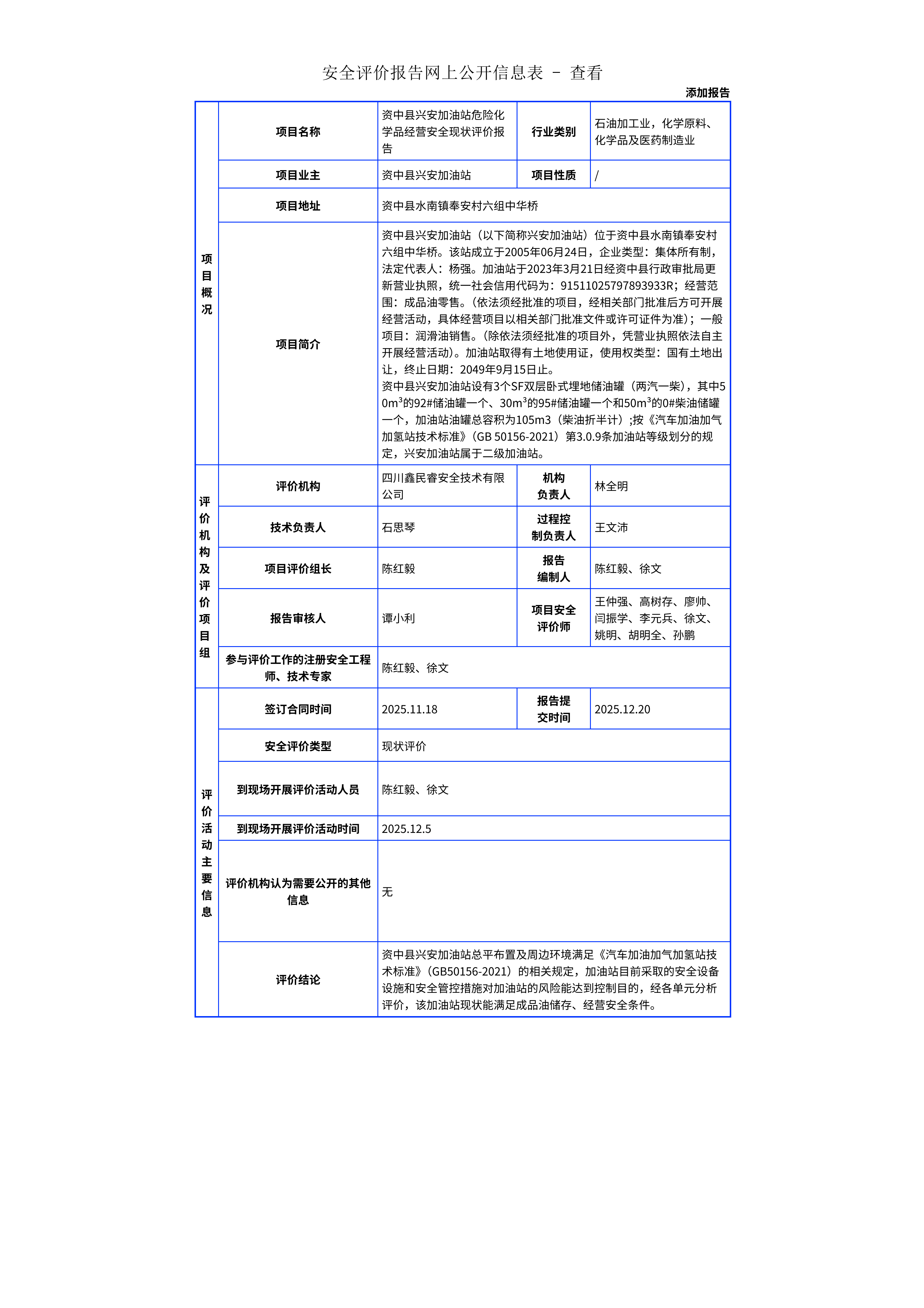 331资中县兴安加油站危险化学品经营安全现状评价报告