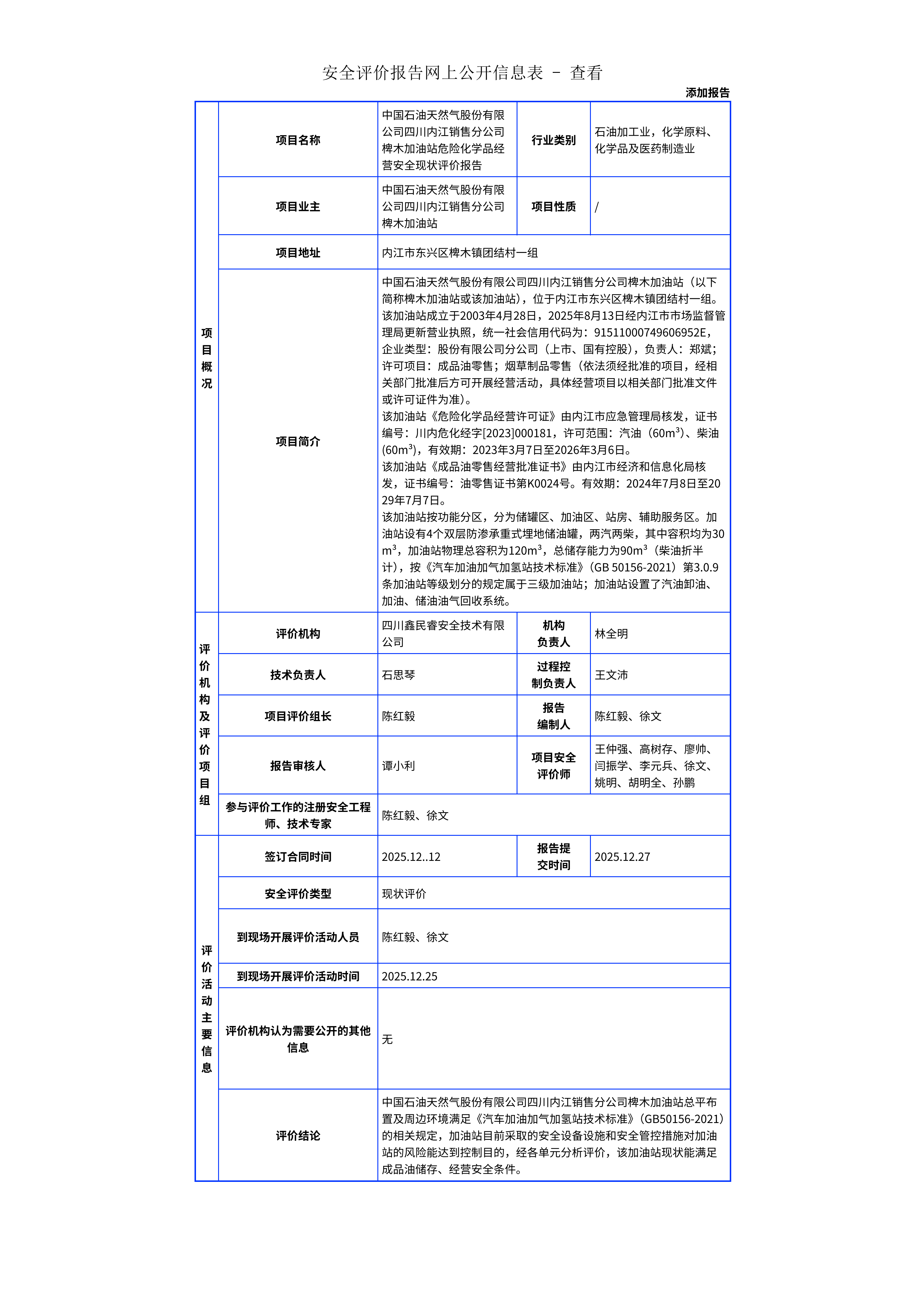 333中国石油天然气股份有限公司四川内江销售分公司椑木加油站危险化学品经营安全现状评价报告