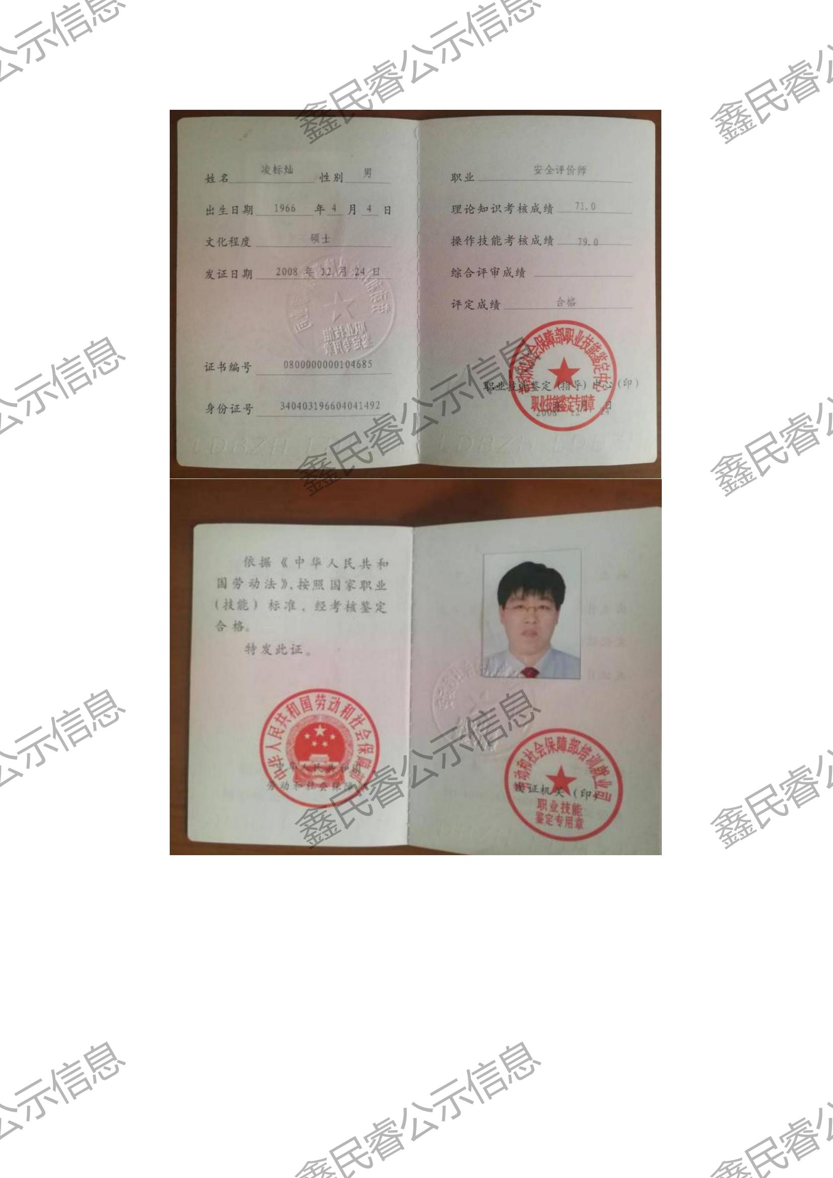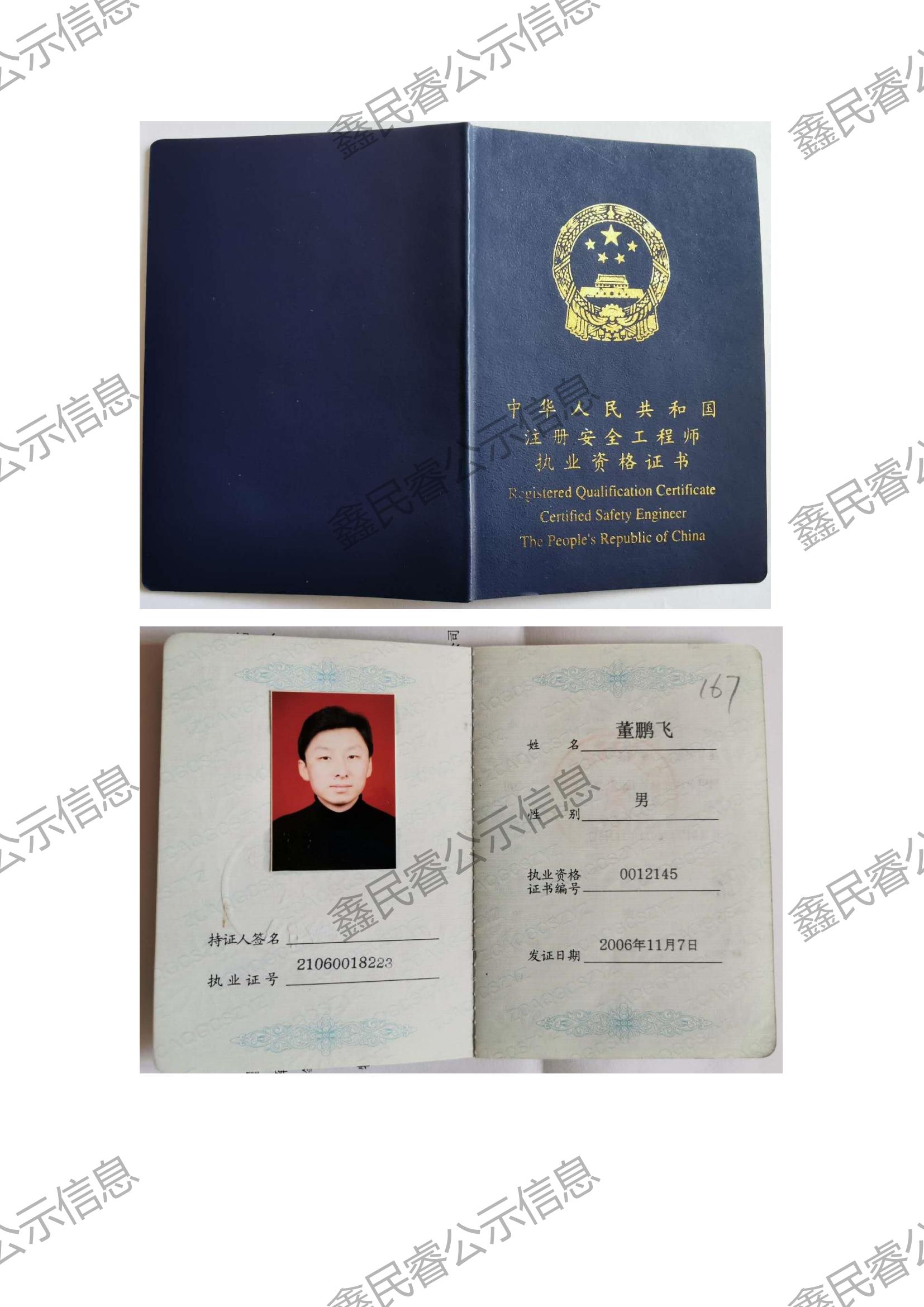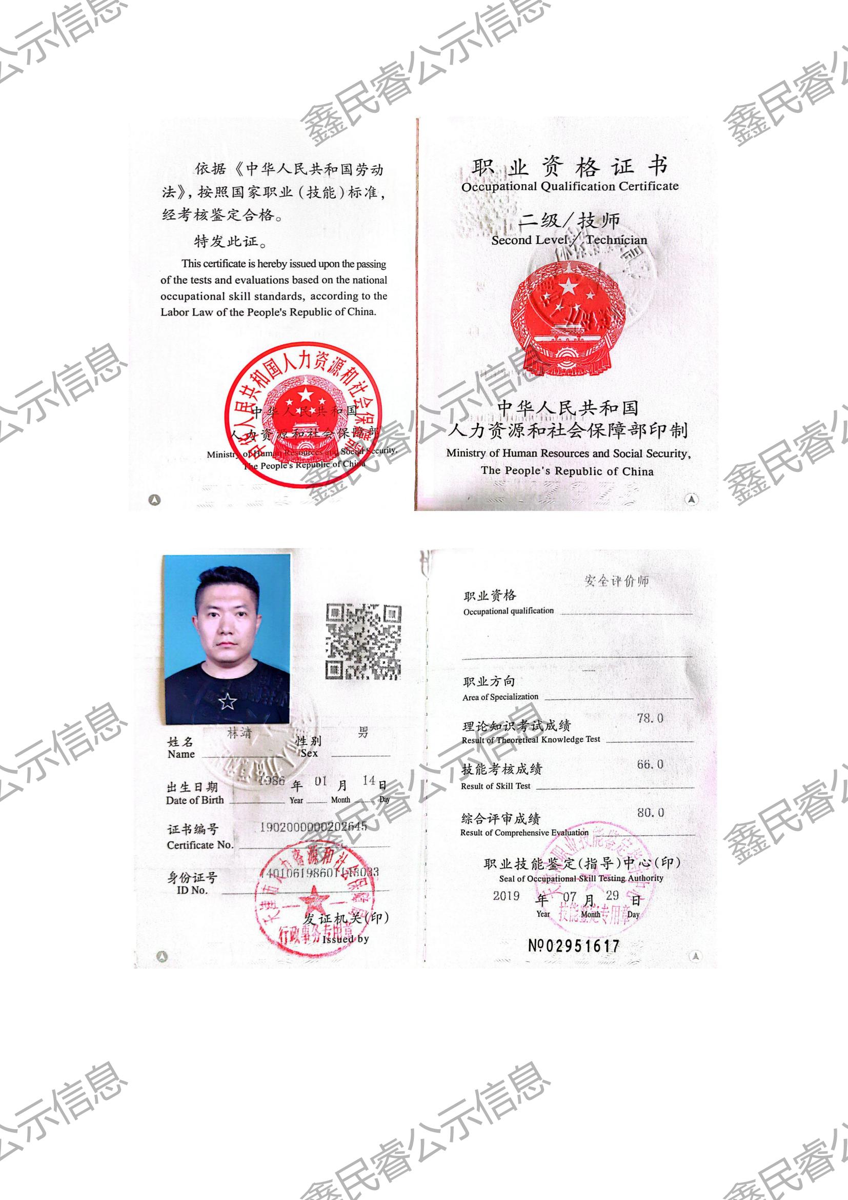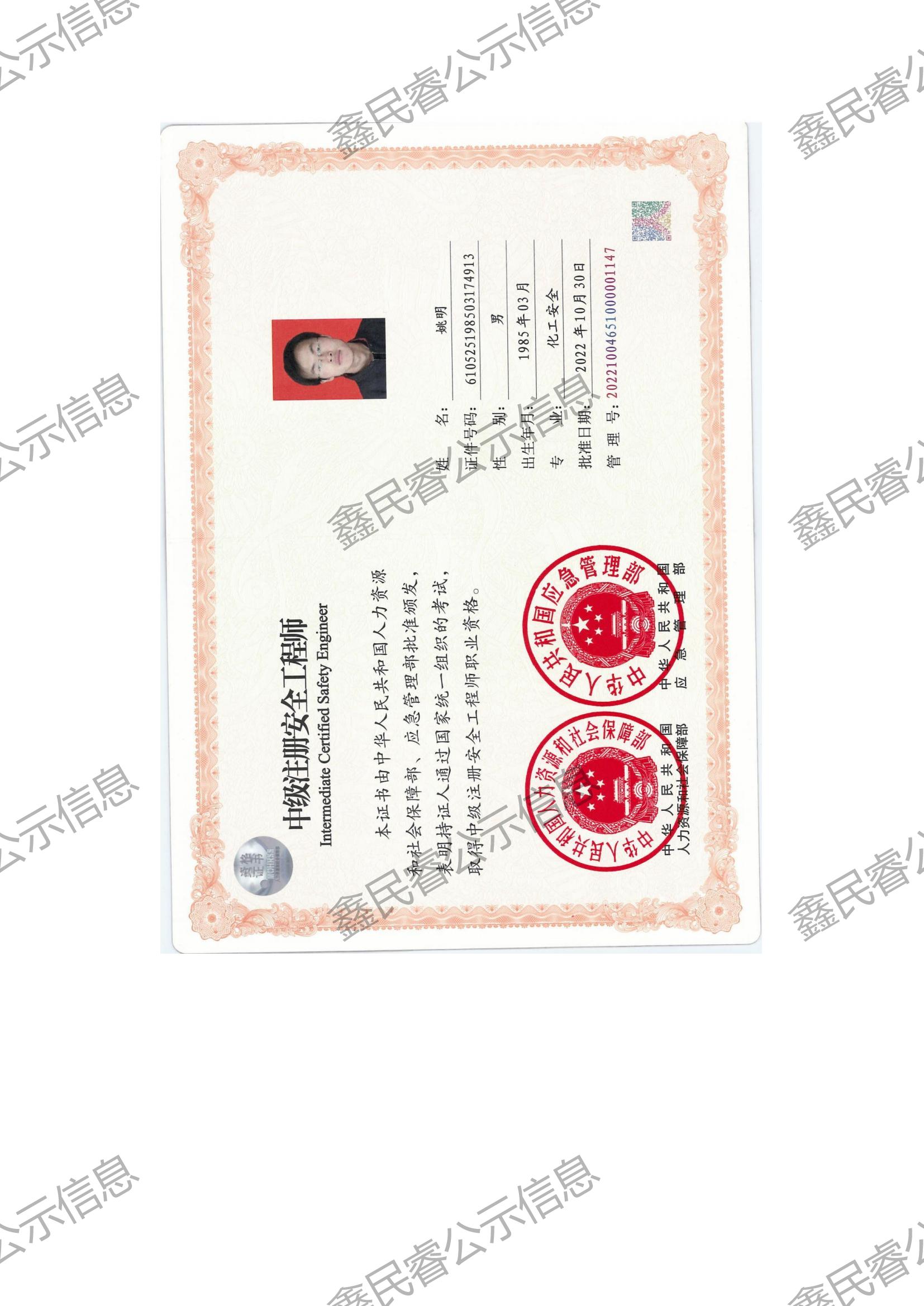 我公司鑫民睿专职安全评价师、注册安全工程师信息公示: