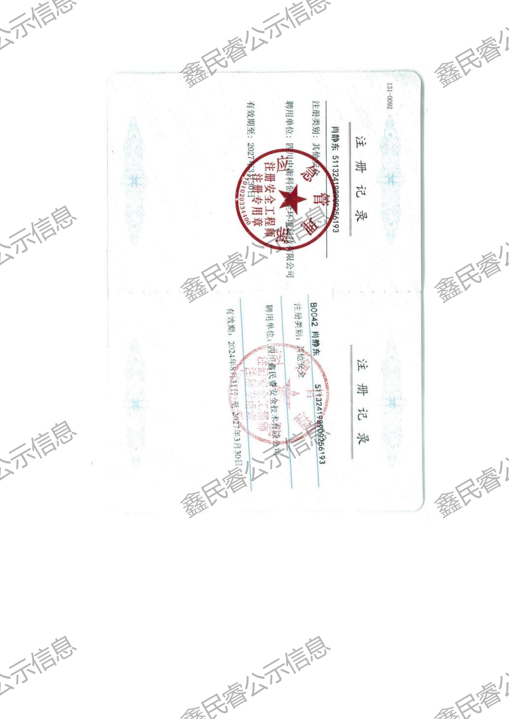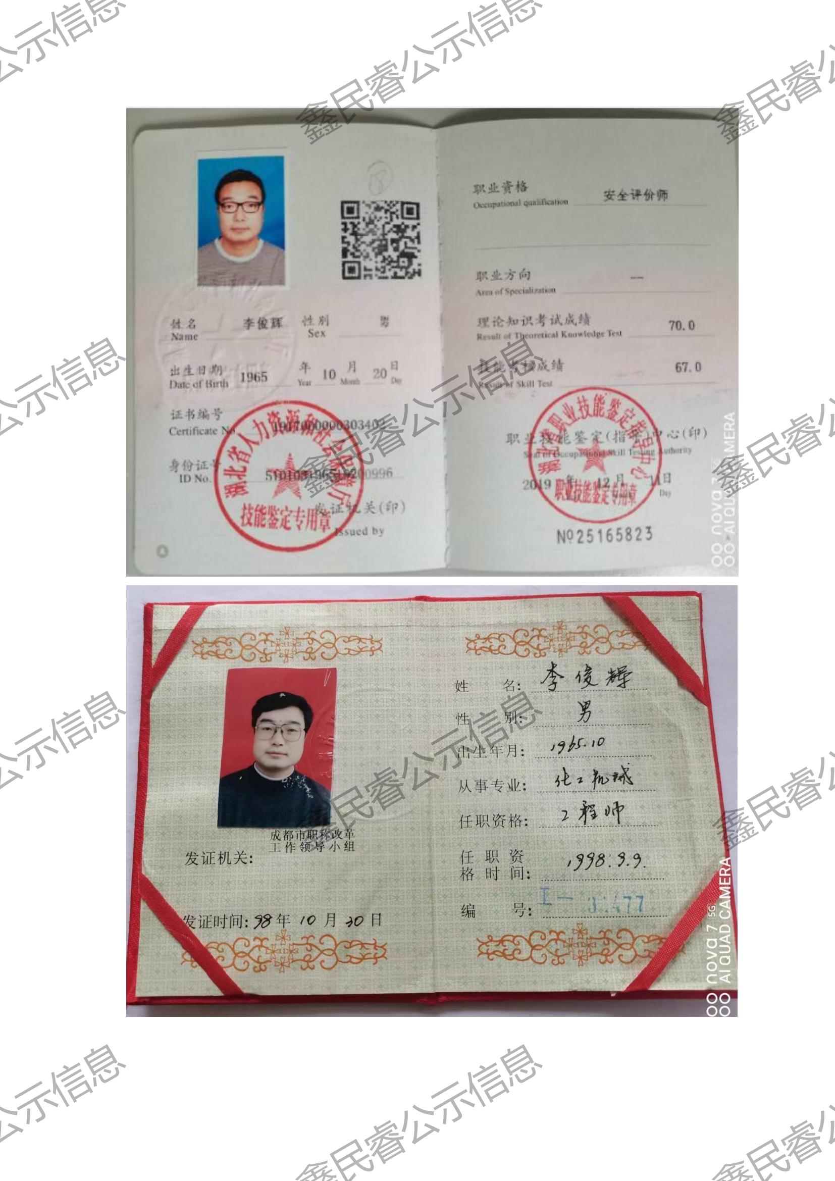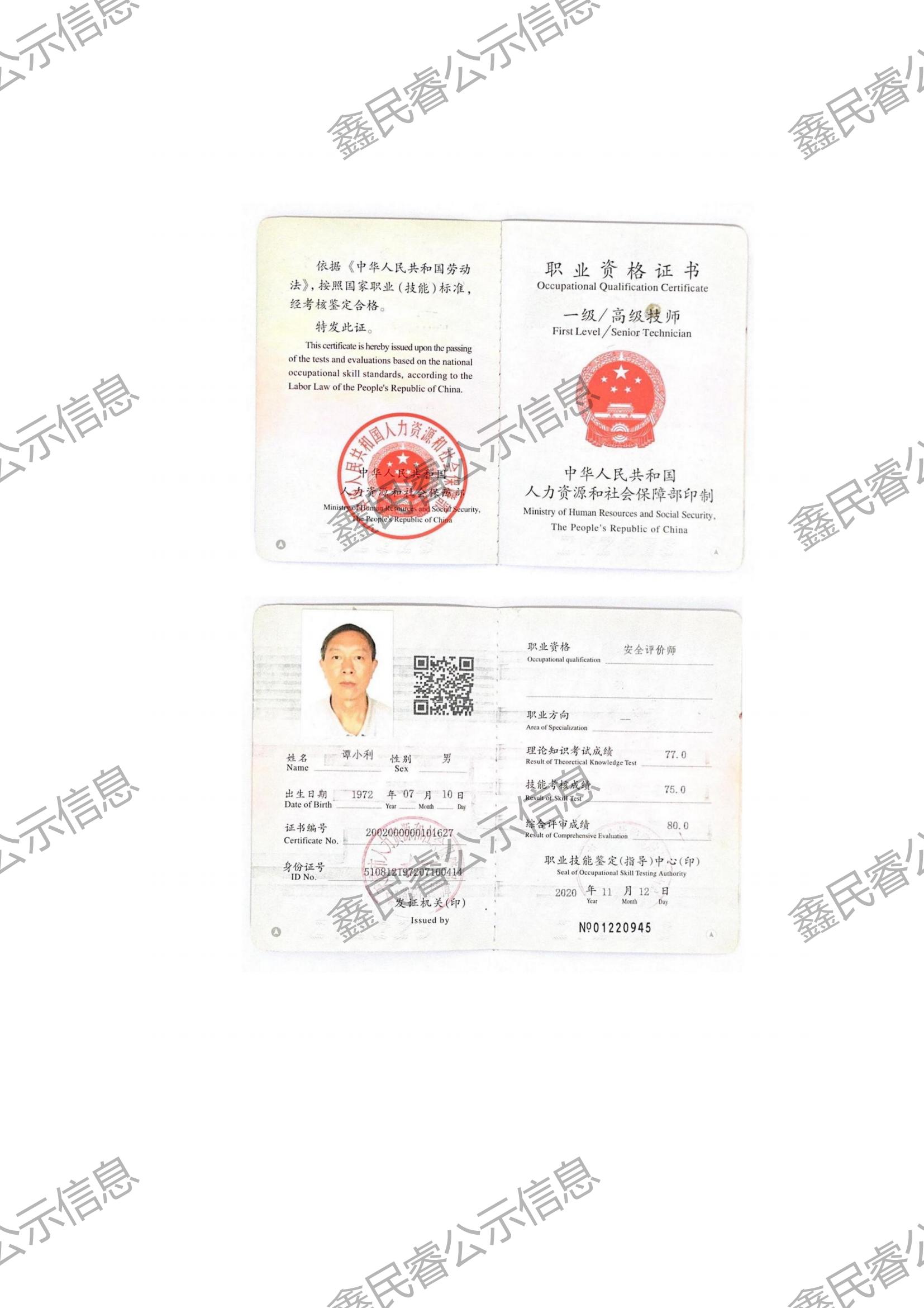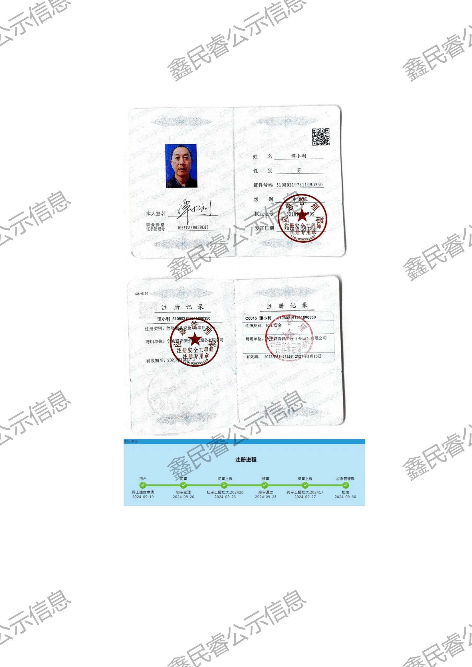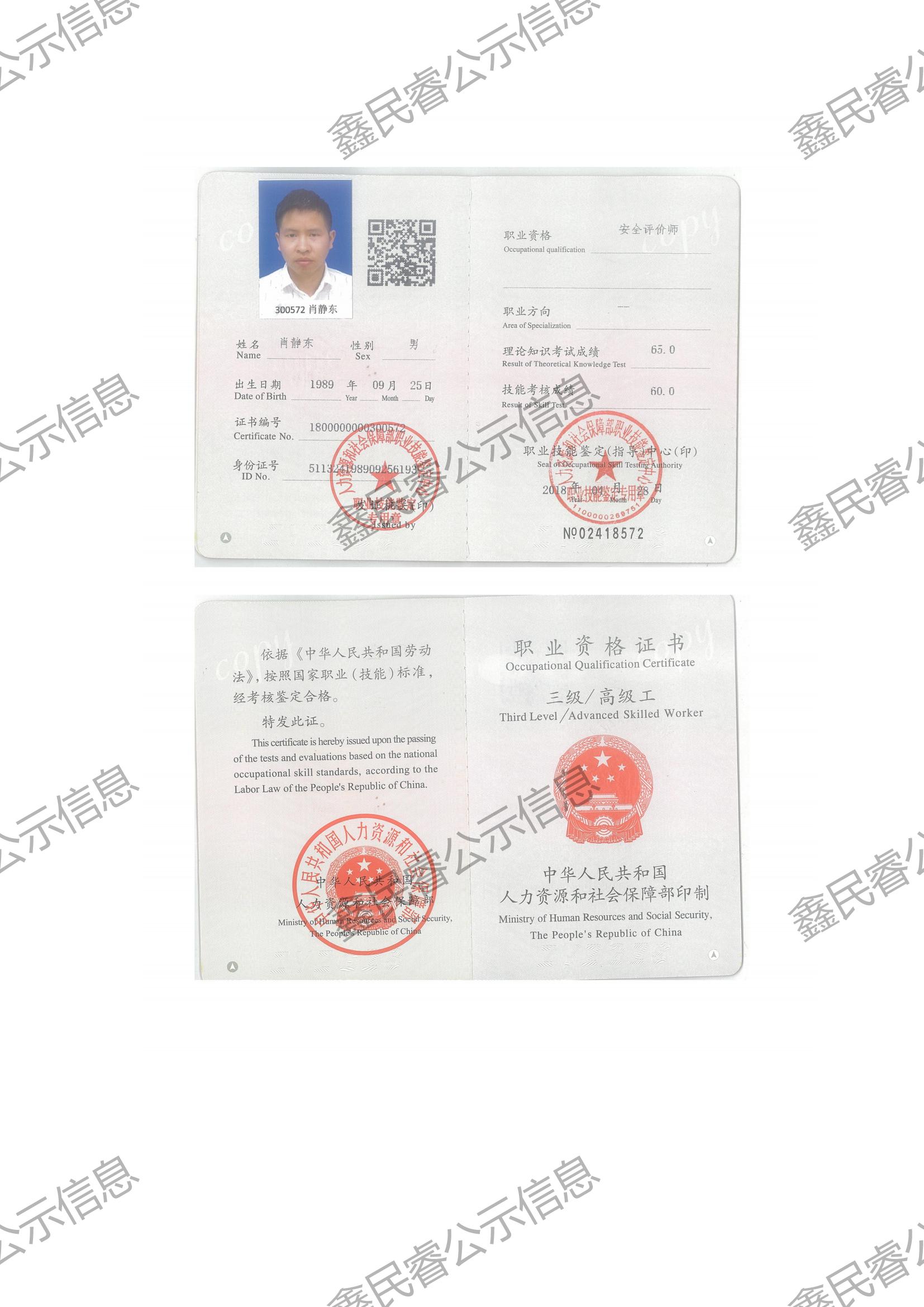 我公司鑫民睿专职安全评价师、注册安全工程师信息公示: