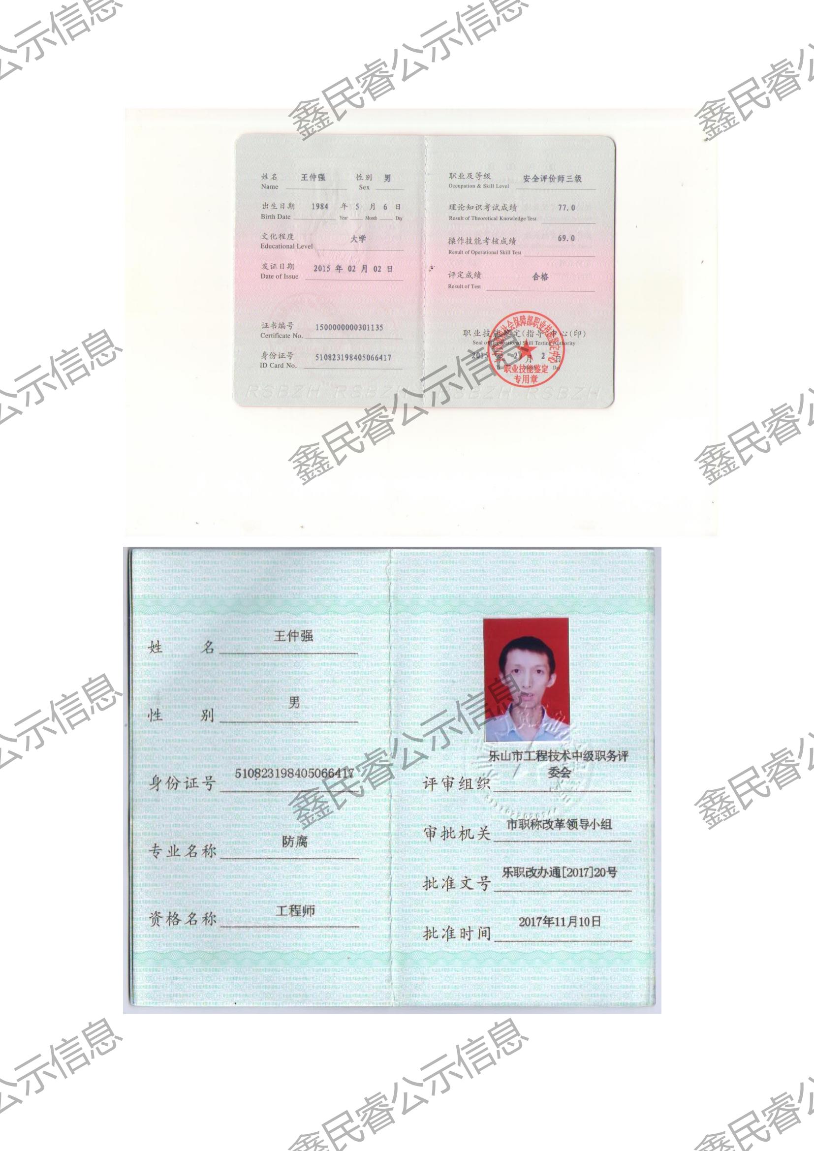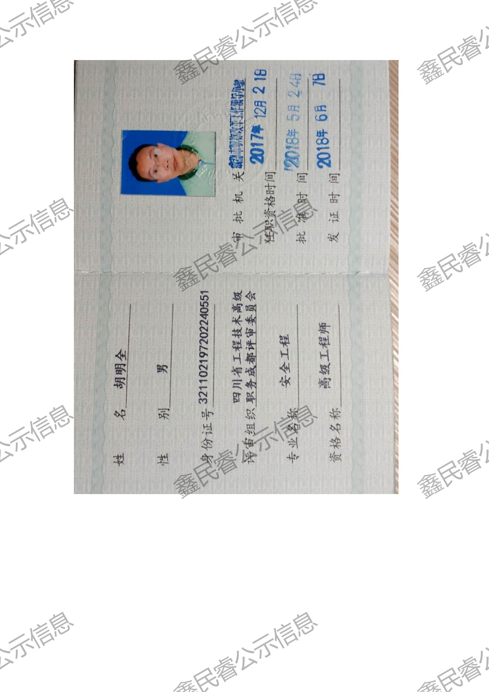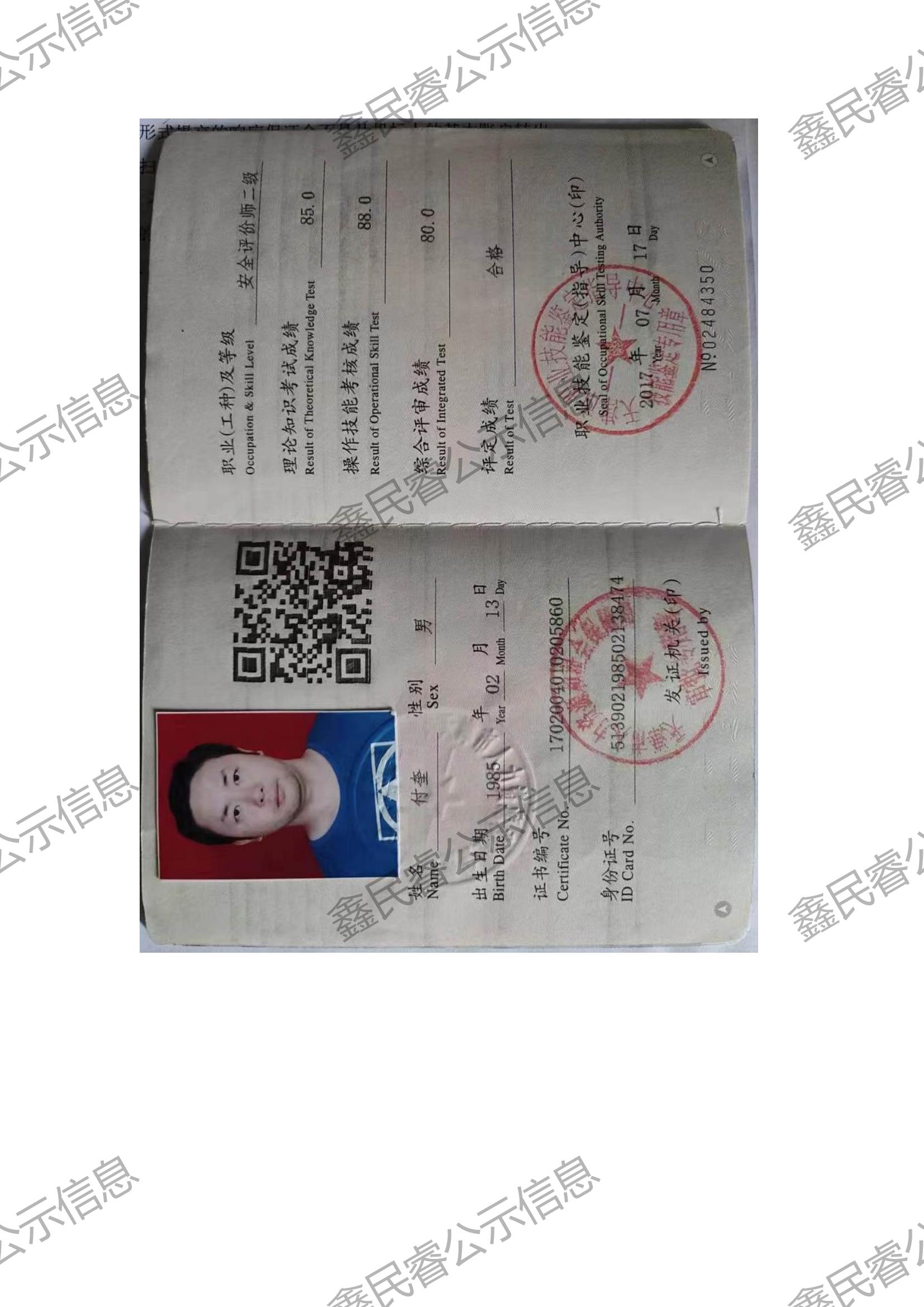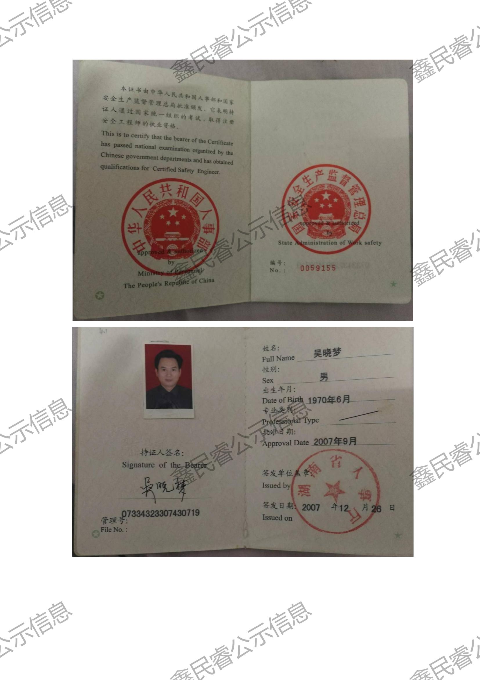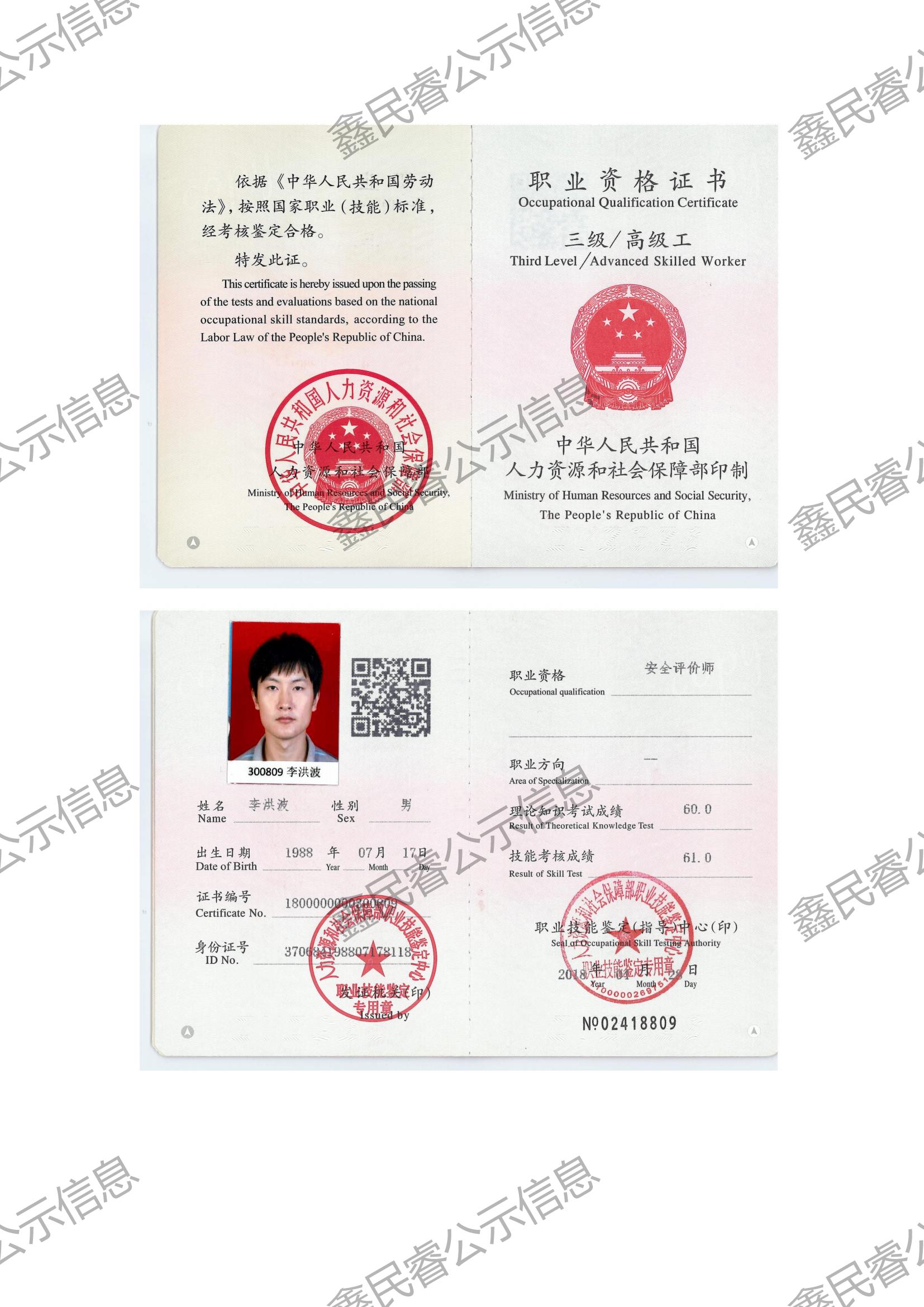 我公司鑫民睿专职安全评价师、注册安全工程师信息公示: