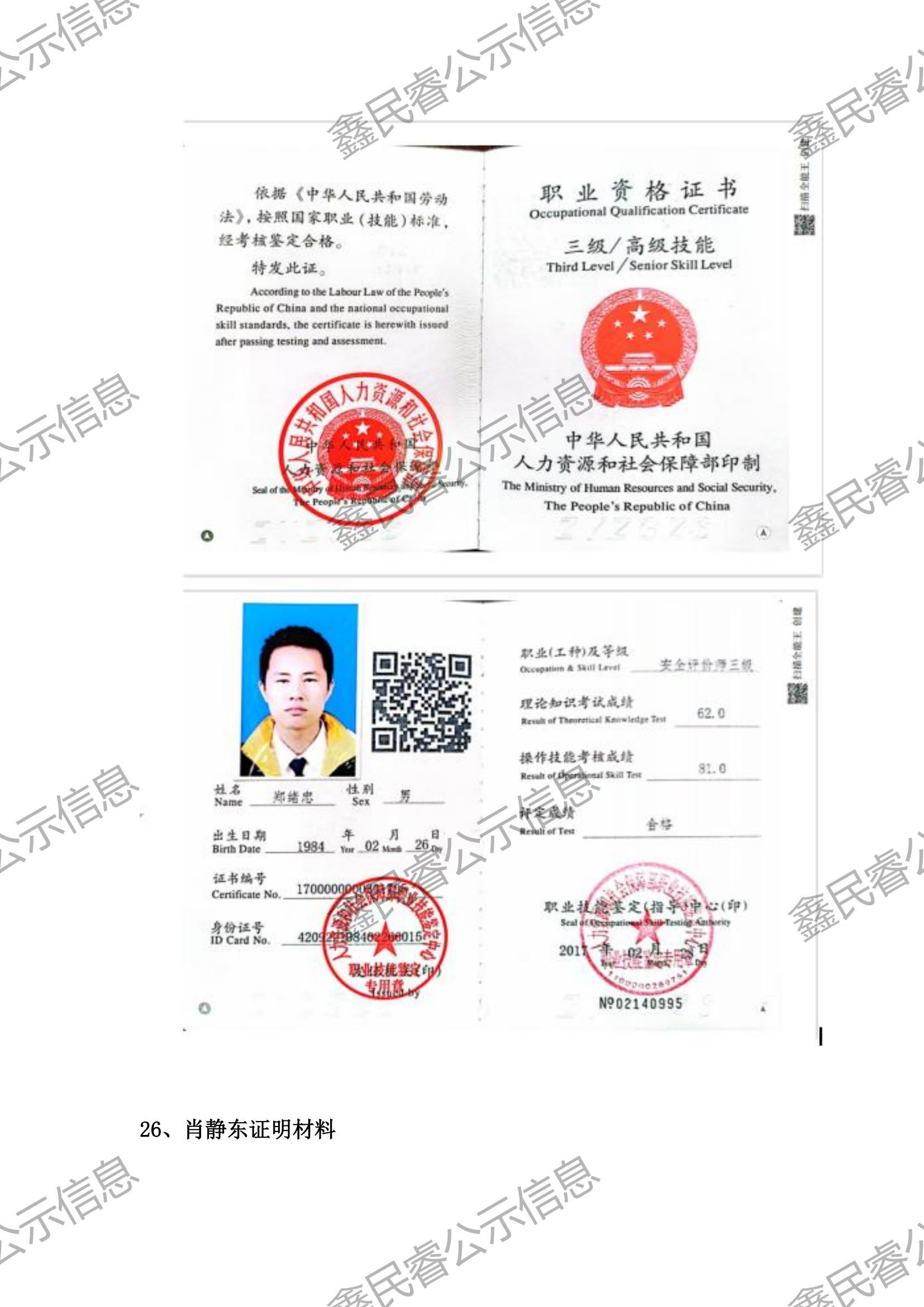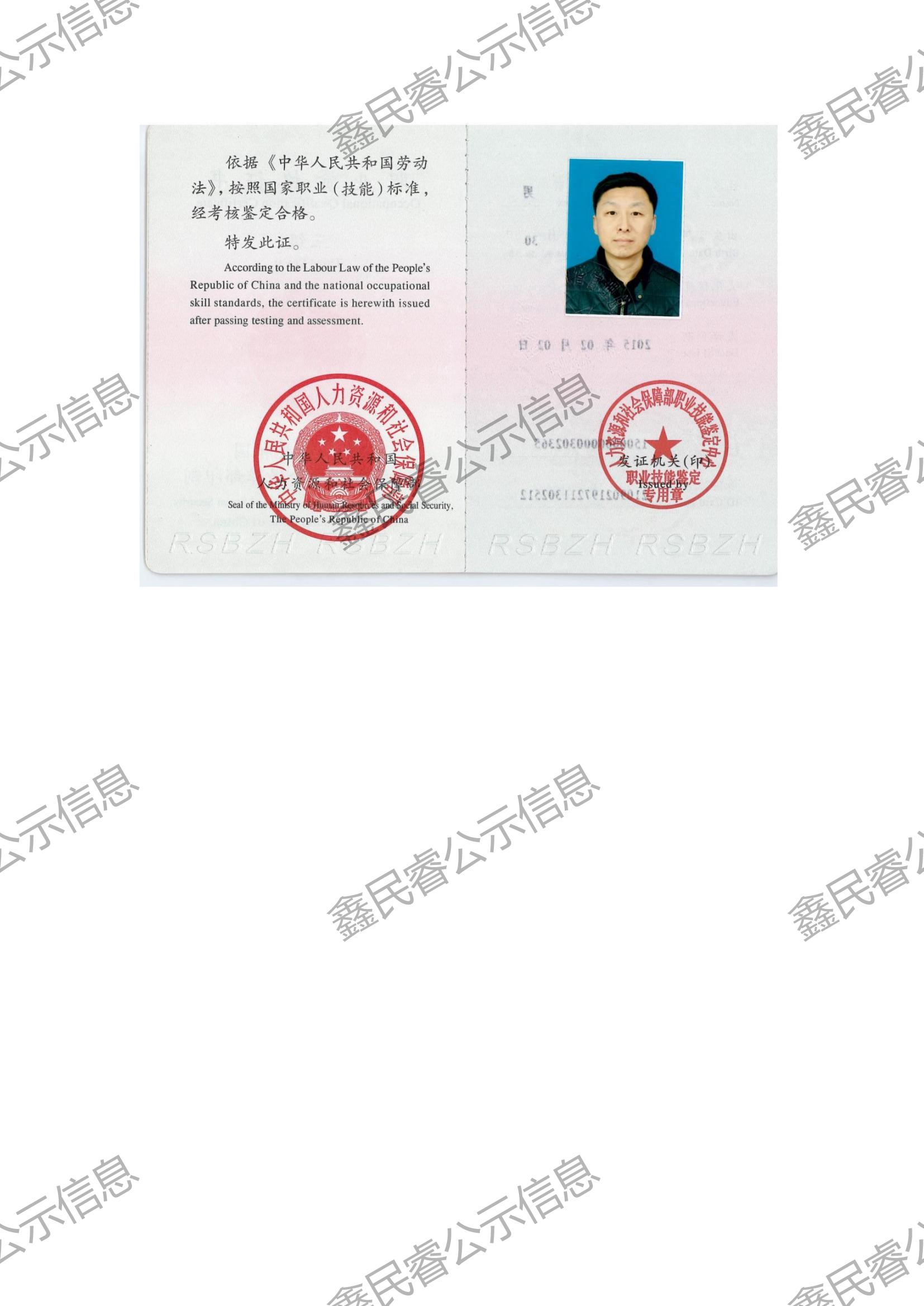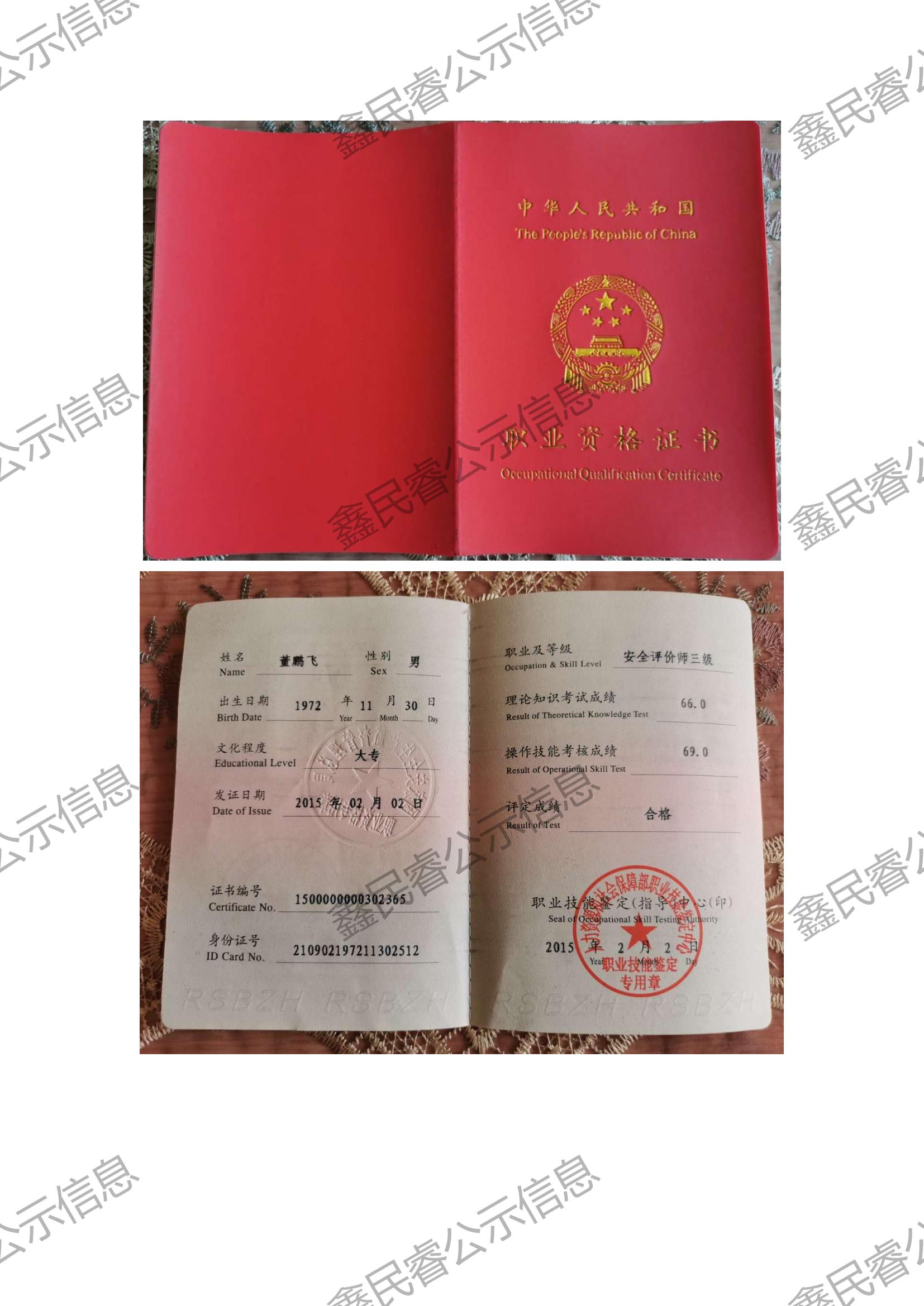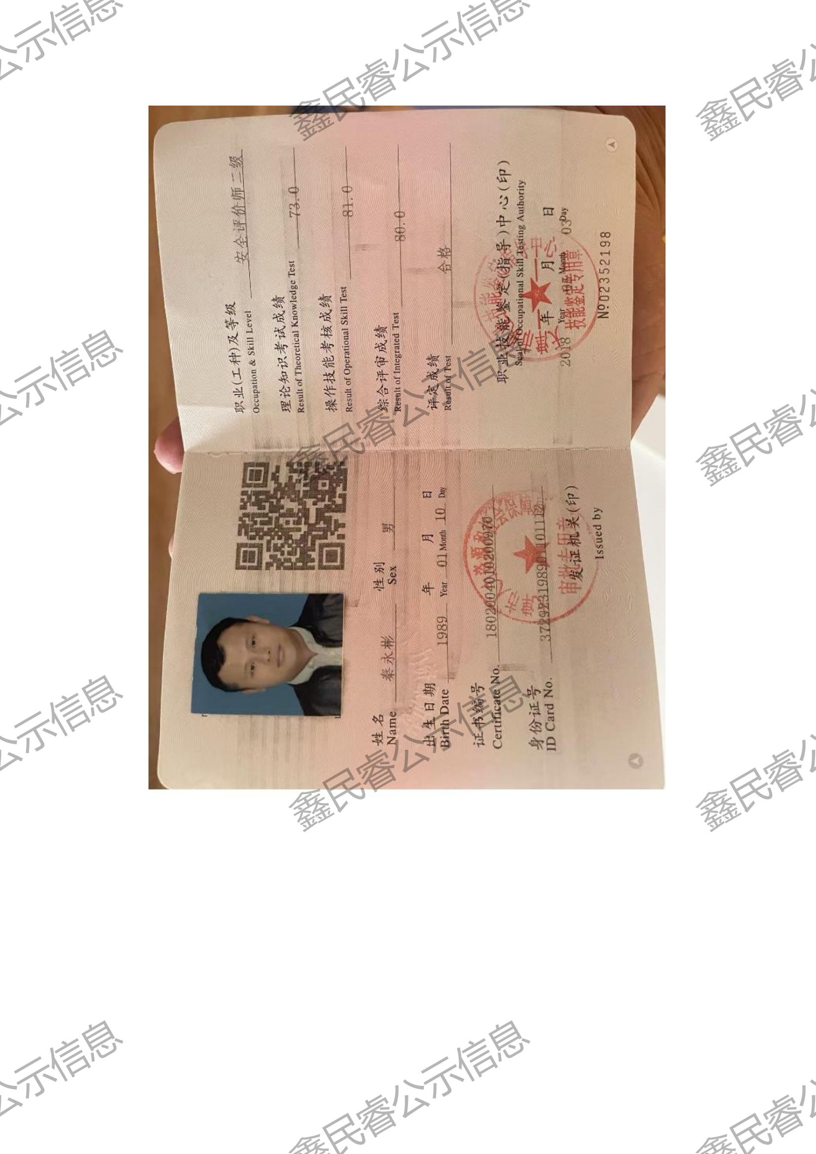 我公司鑫民睿专职安全评价师、注册安全工程师信息公示: