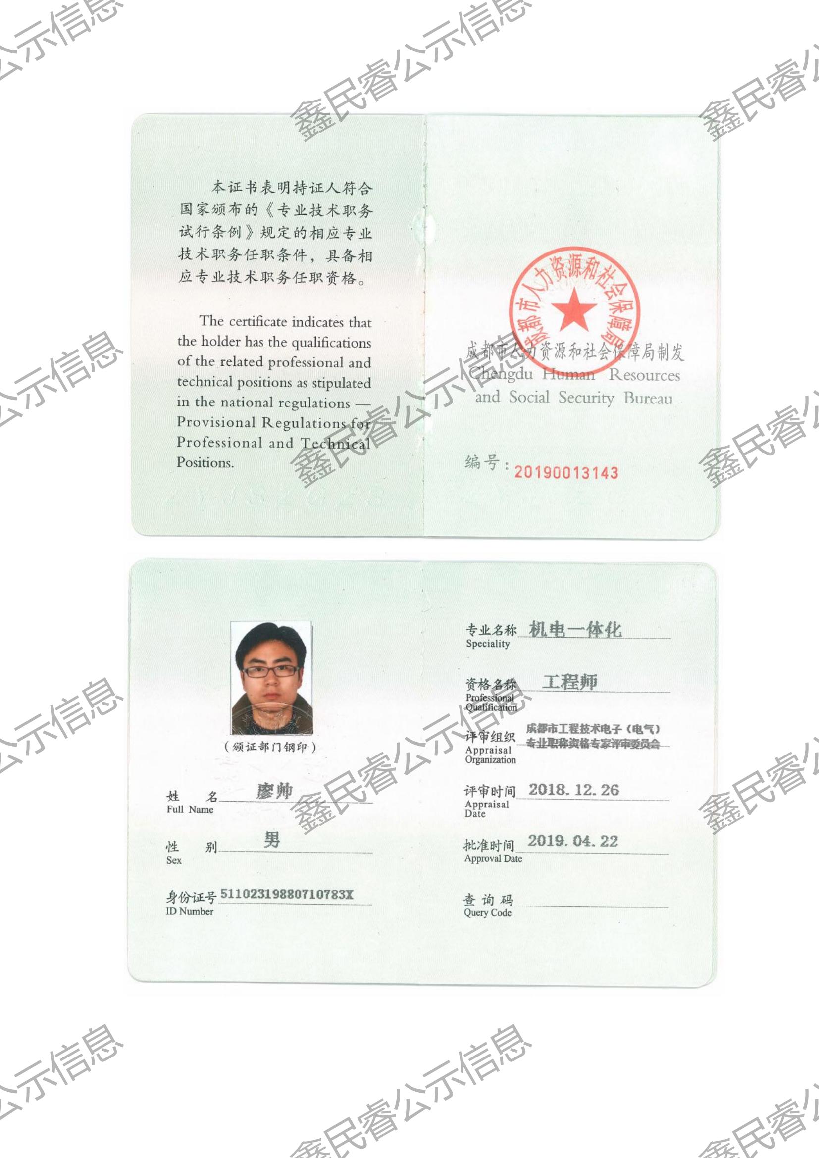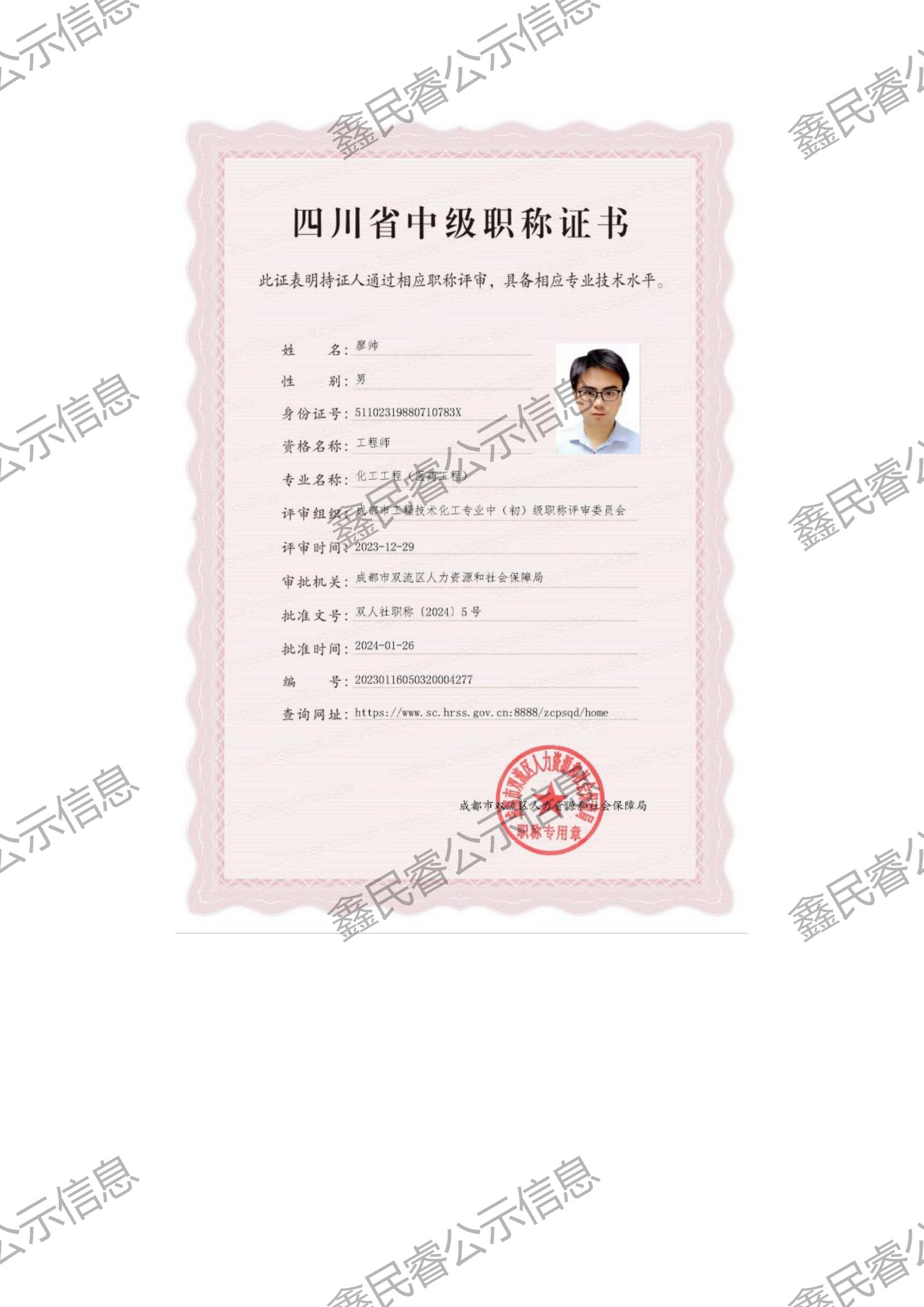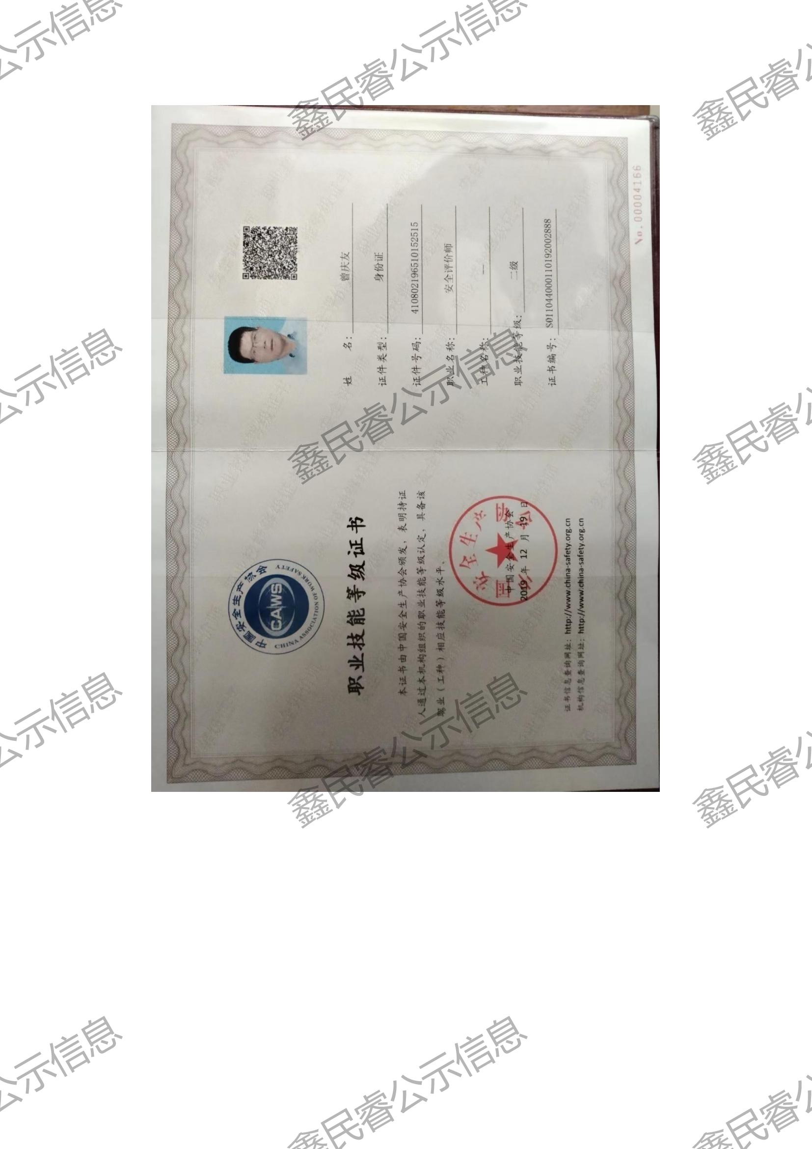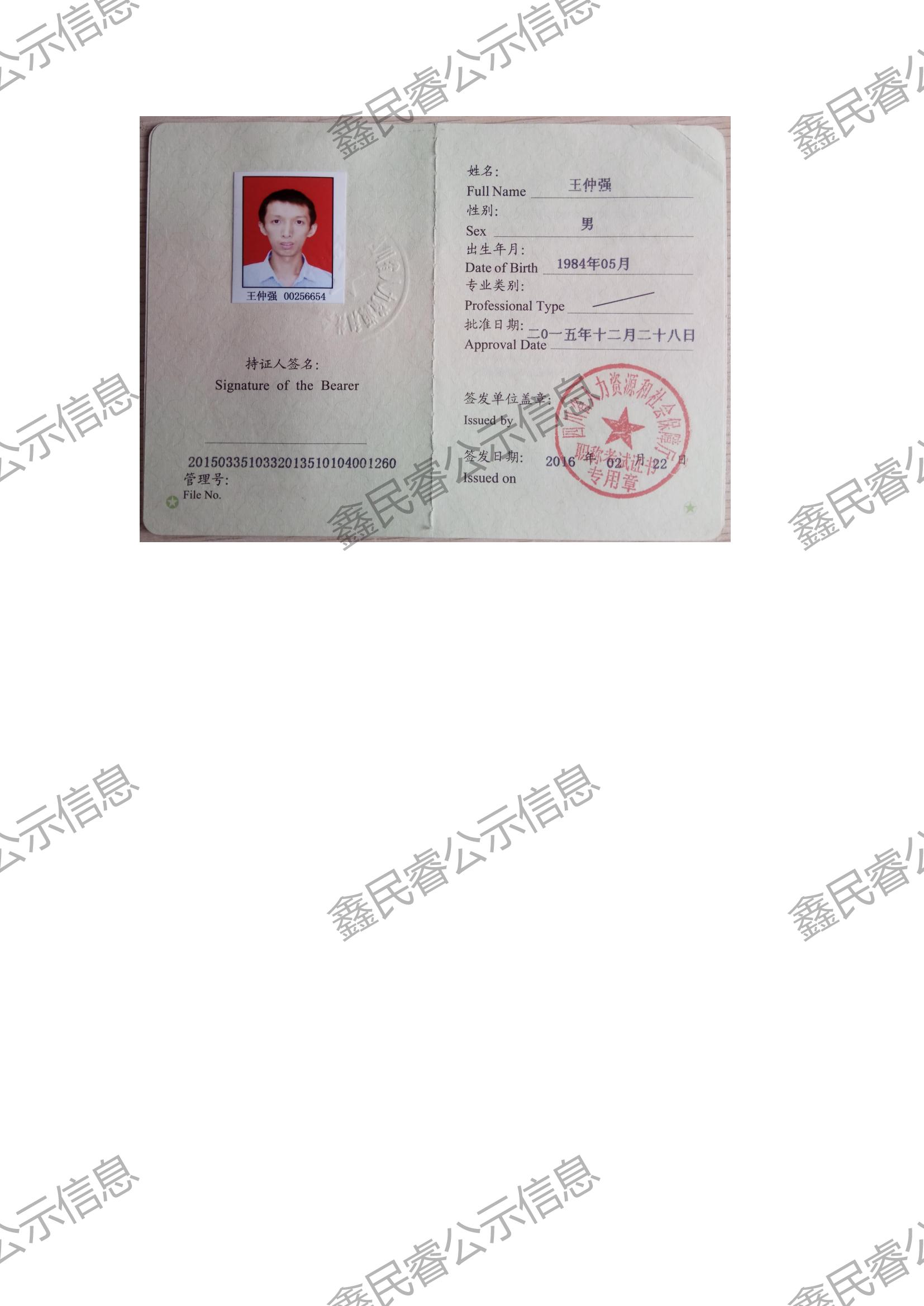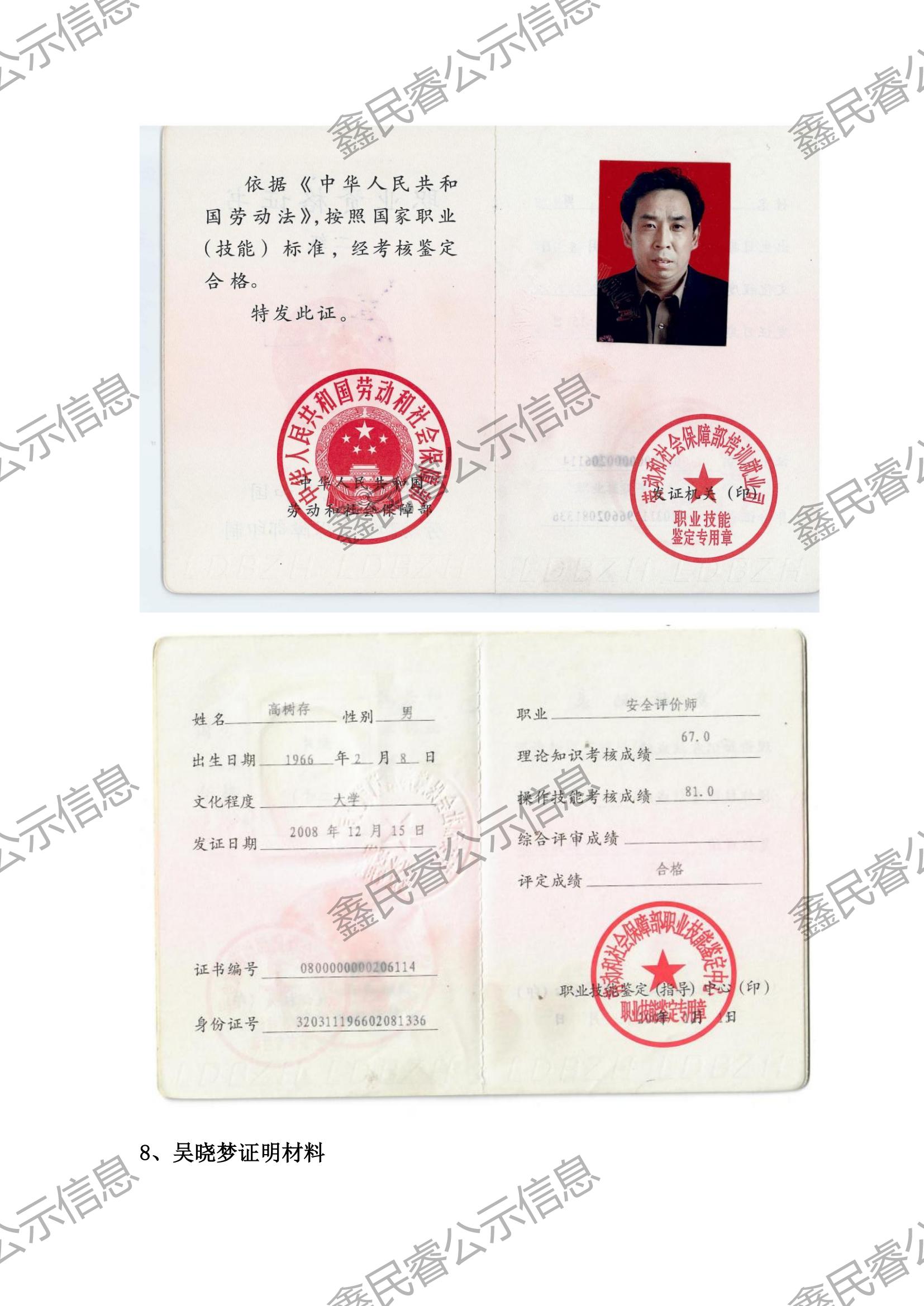 我公司鑫民睿专职安全评价师、注册安全工程师信息公示: