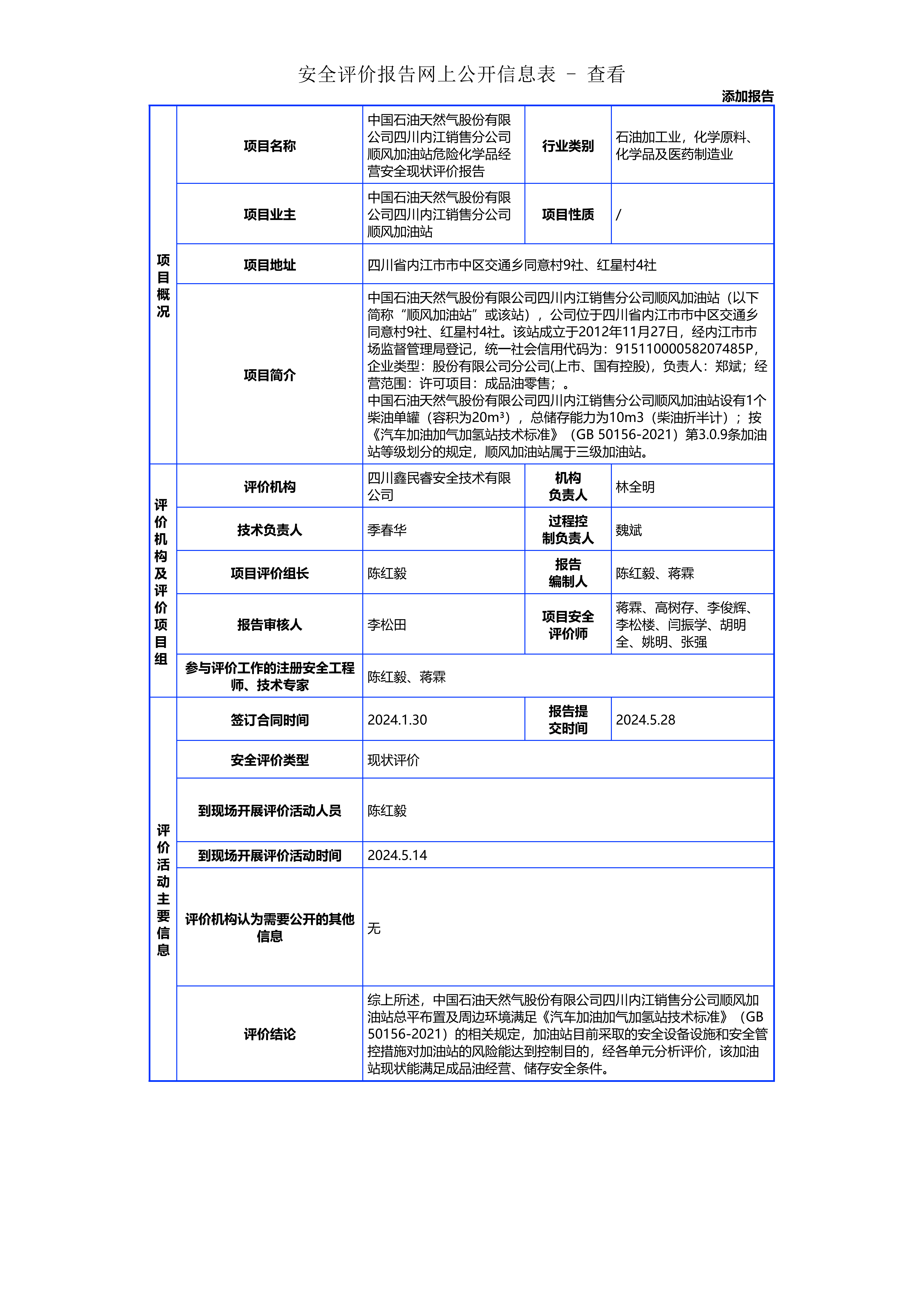 063中国石油天然气股份有限公司四川内江销售分公司顺风加油站项目安全现状评价