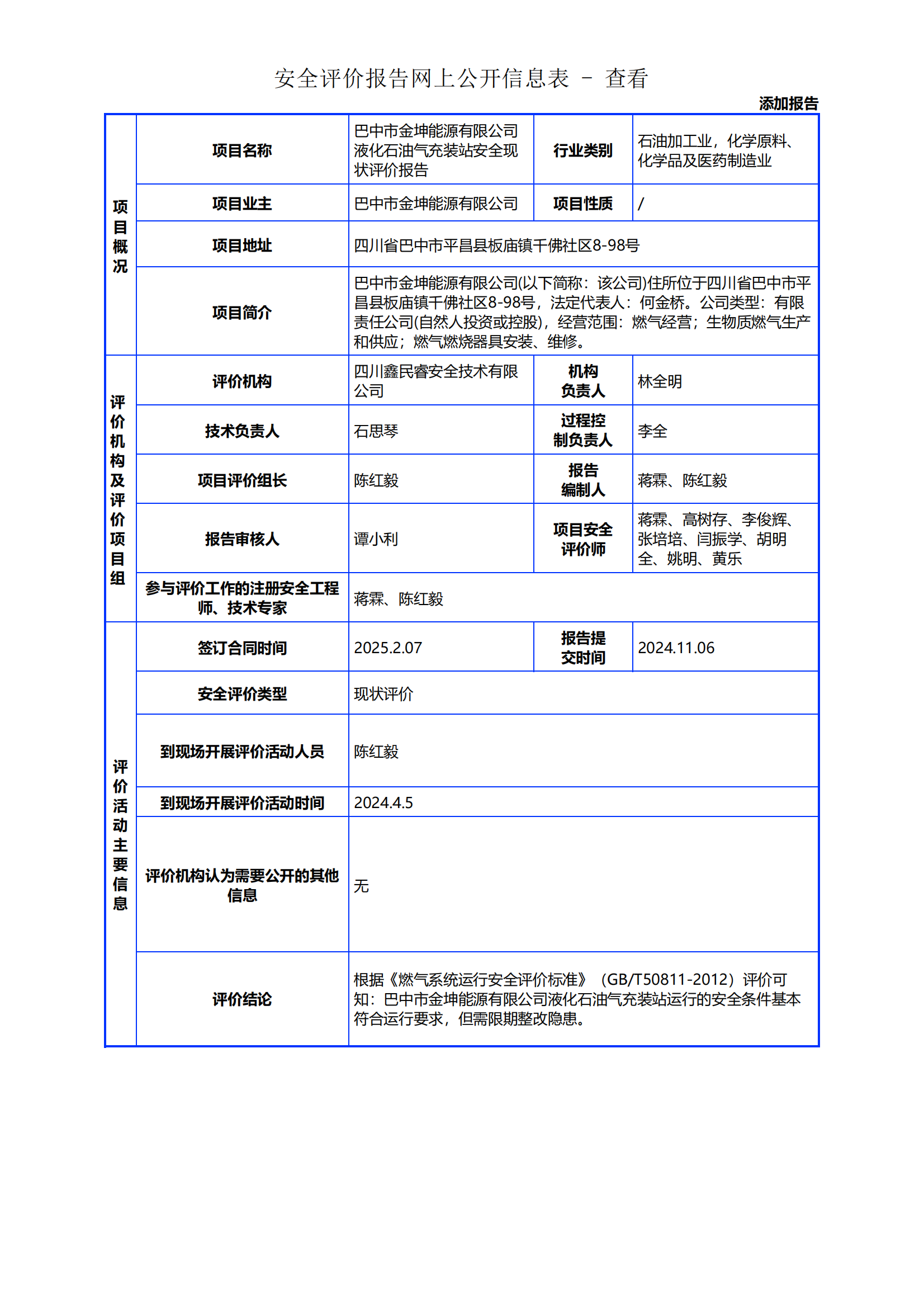 132四川省巴中市金坤能源有限公司加油站危险化学品经营安全现状评价