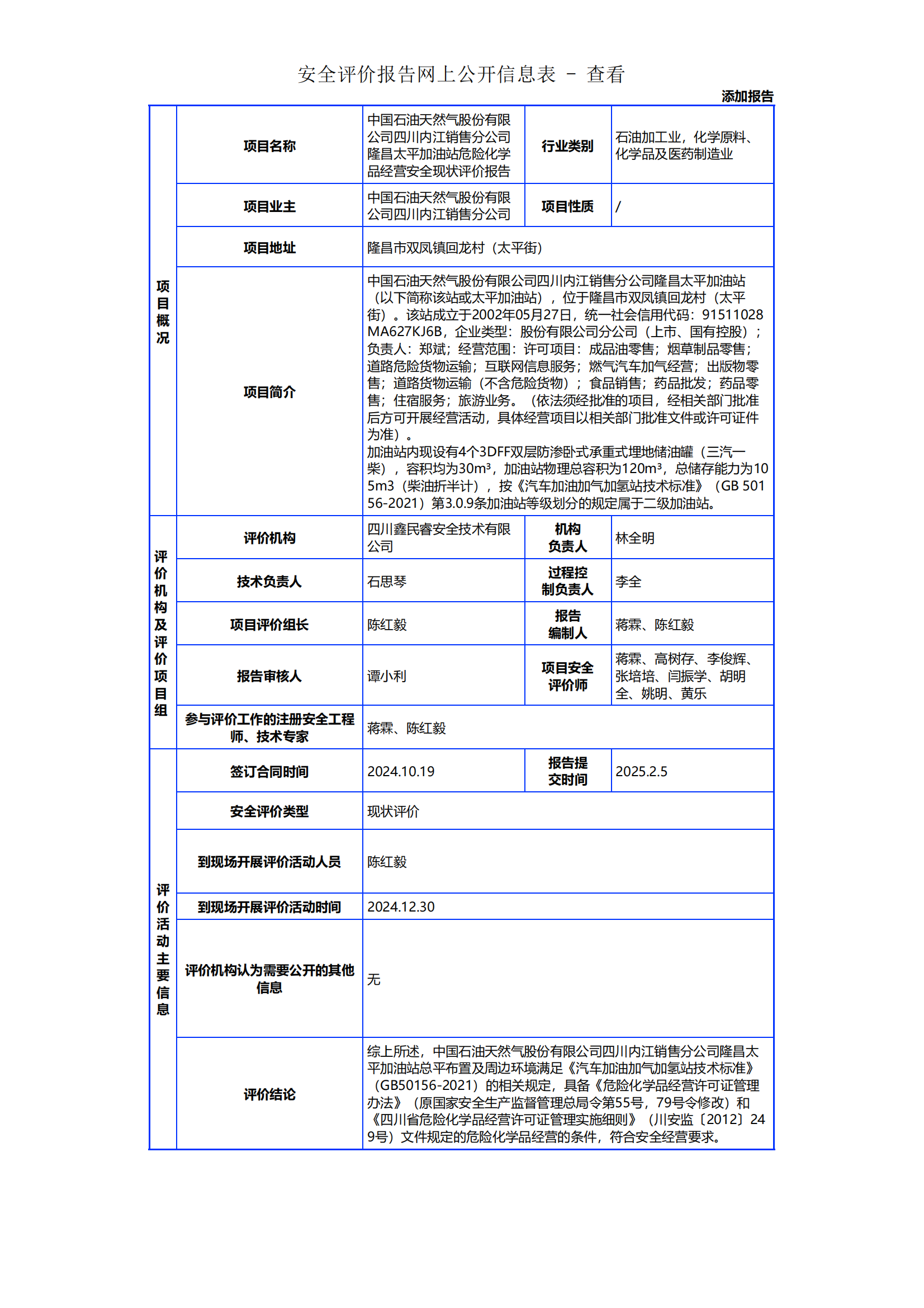 142中国石油天然气股份有限公司四川内江销售分公司隆昌太平加油站危险化学品经营储存安全现状评价报告