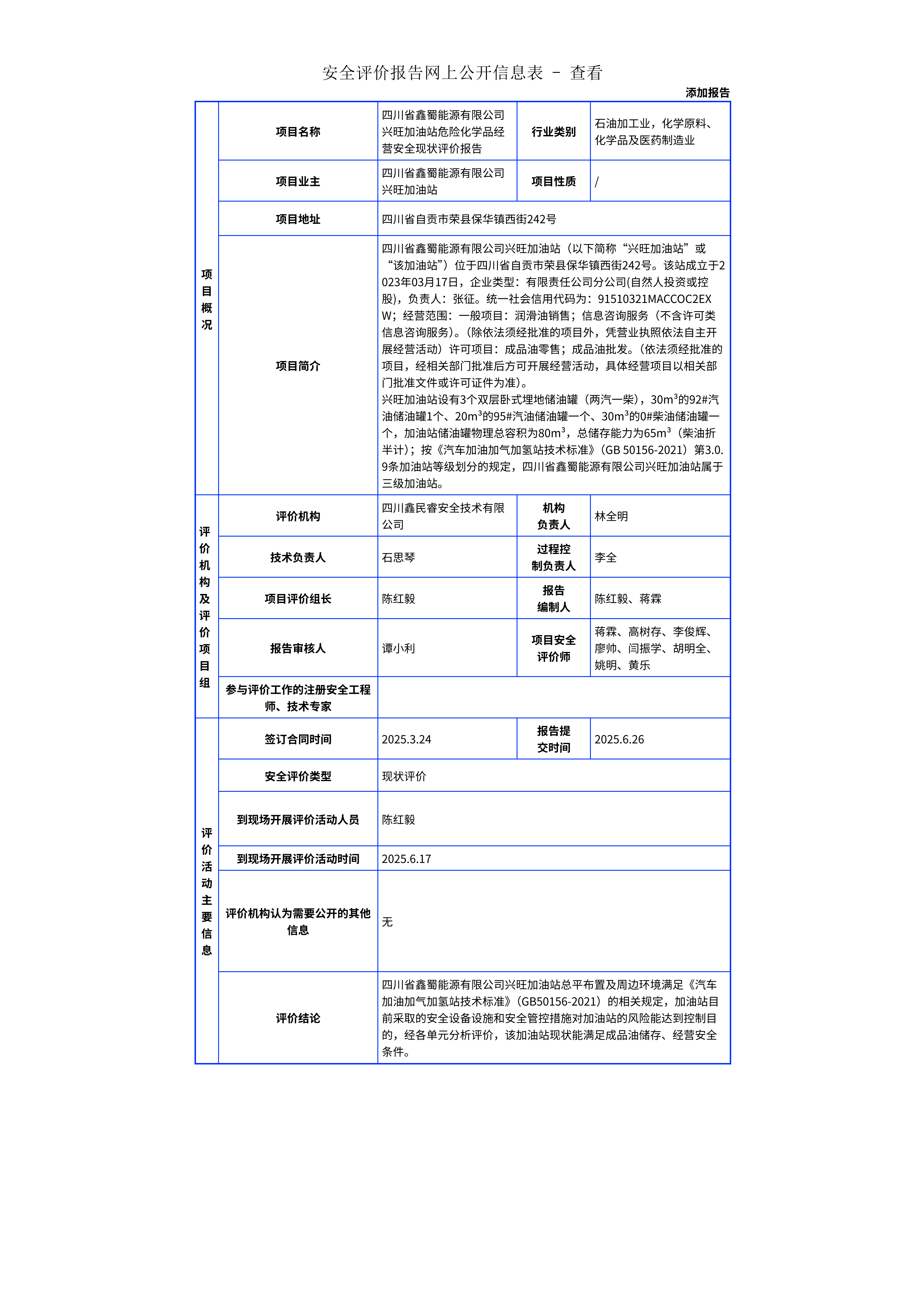 245四川省鑫蜀能源有限公司兴旺加油站危险化学品经营安全现状评价报告