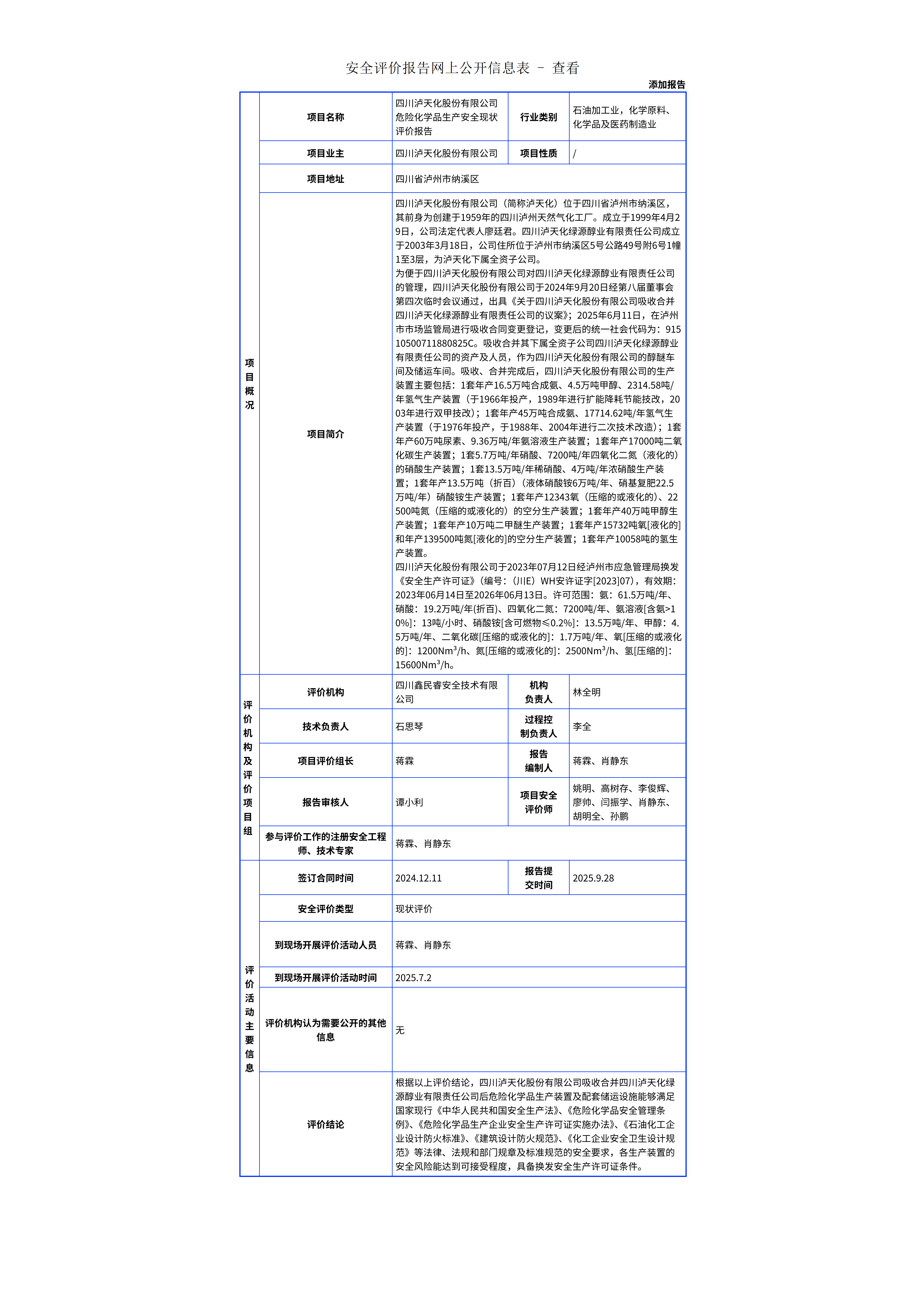 278四川泸天化股份有限公司危险化学品生产安全现状评价报告