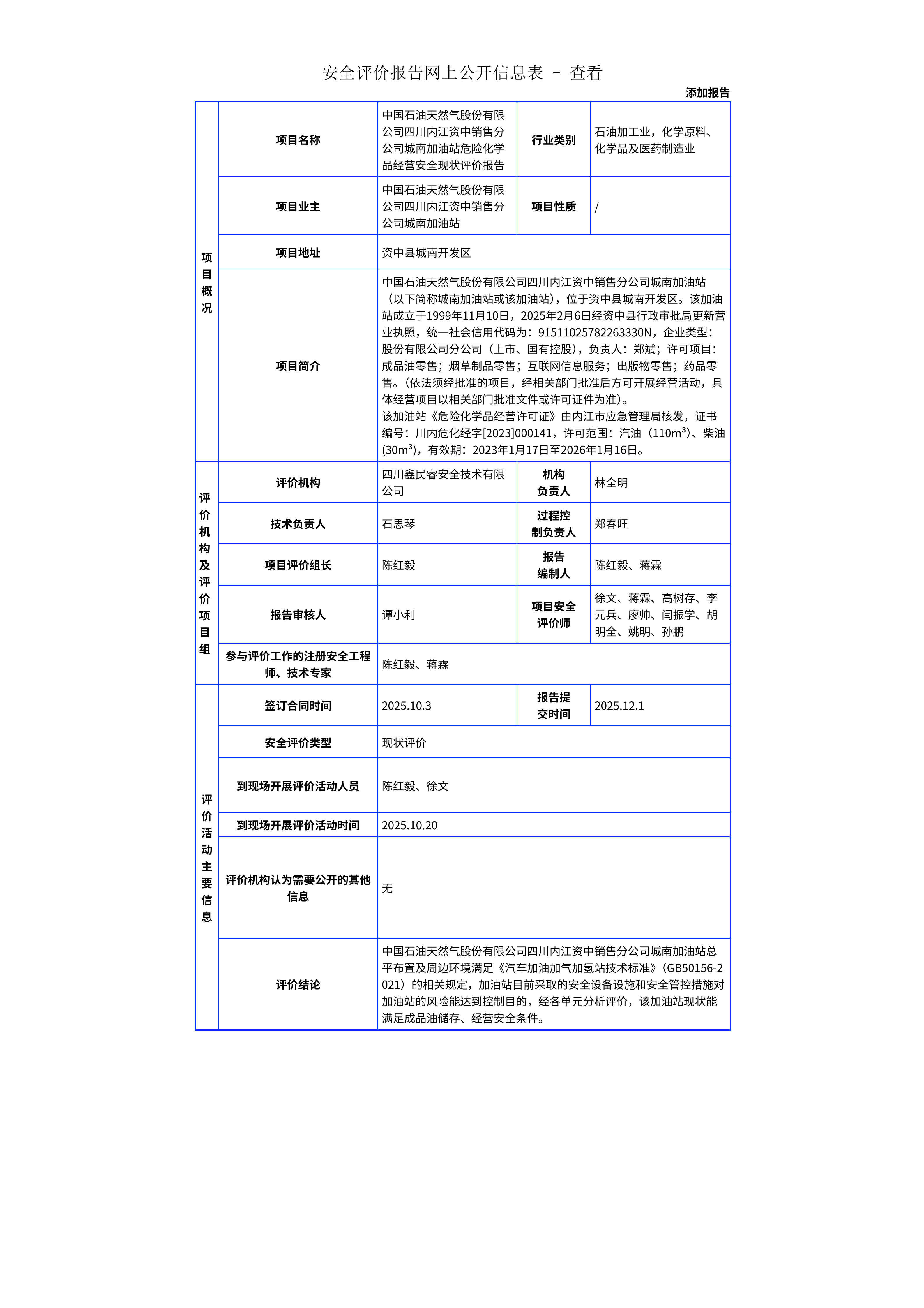322中国石油天然气股份有限公司四川内江资中销售分公司城南加油站危险化学品经营安全现状评价报告