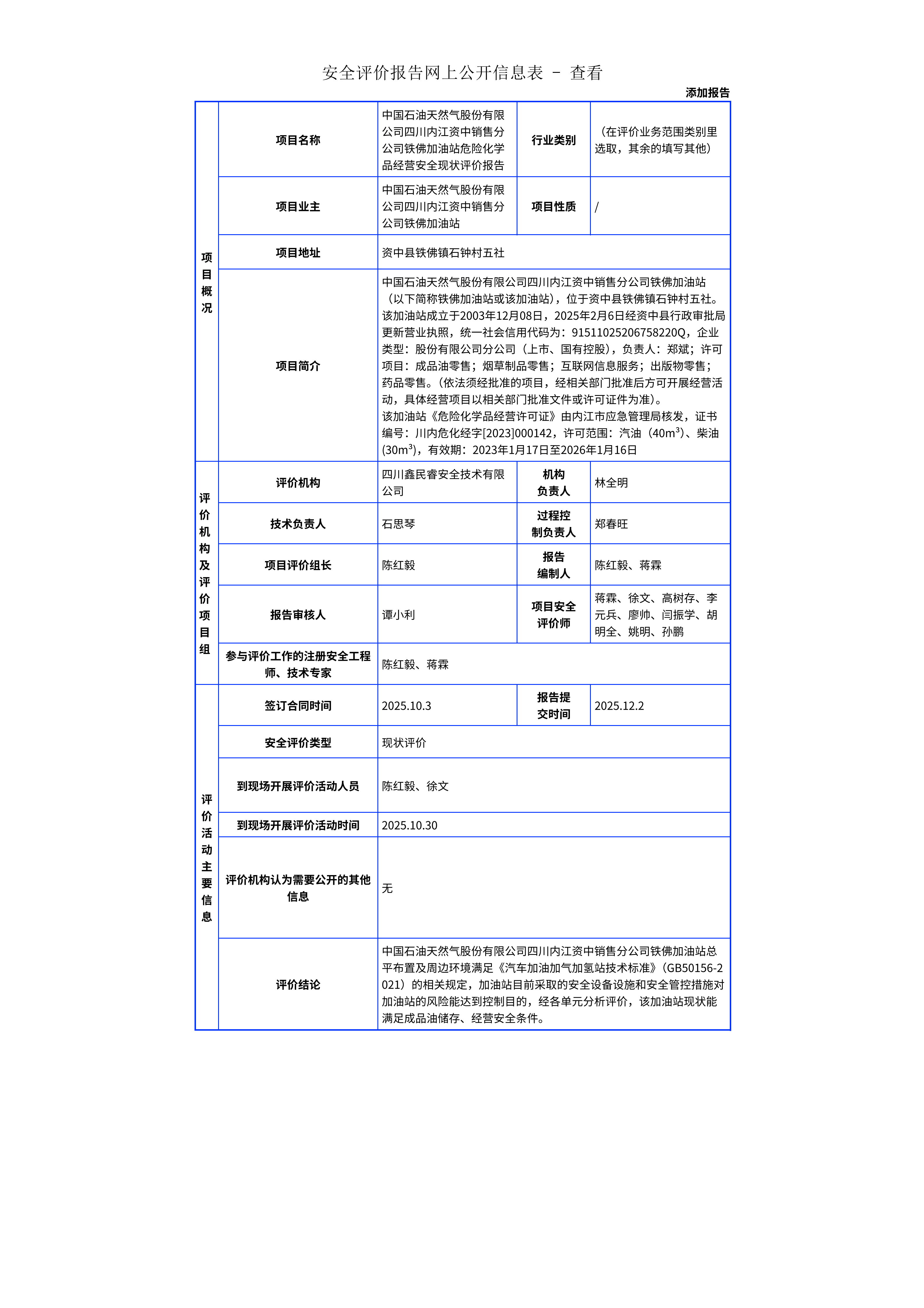 323中国石油天然气股份有限公司四川内江资中销售分公司铁佛加油站危险化学品经营安全现状评价报告