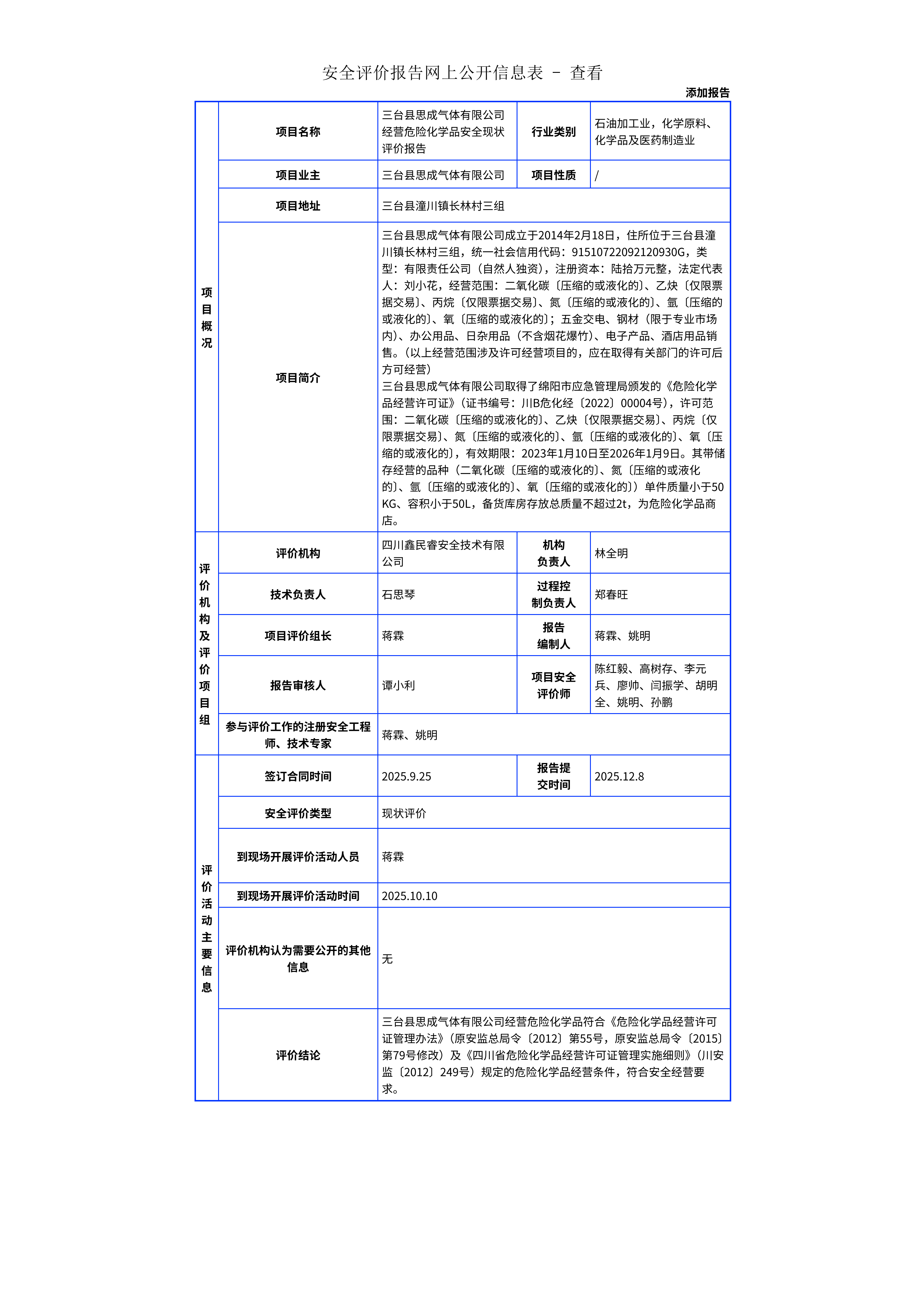 326三台县思成气体有限公司经营危险化学品安全现状评价报告