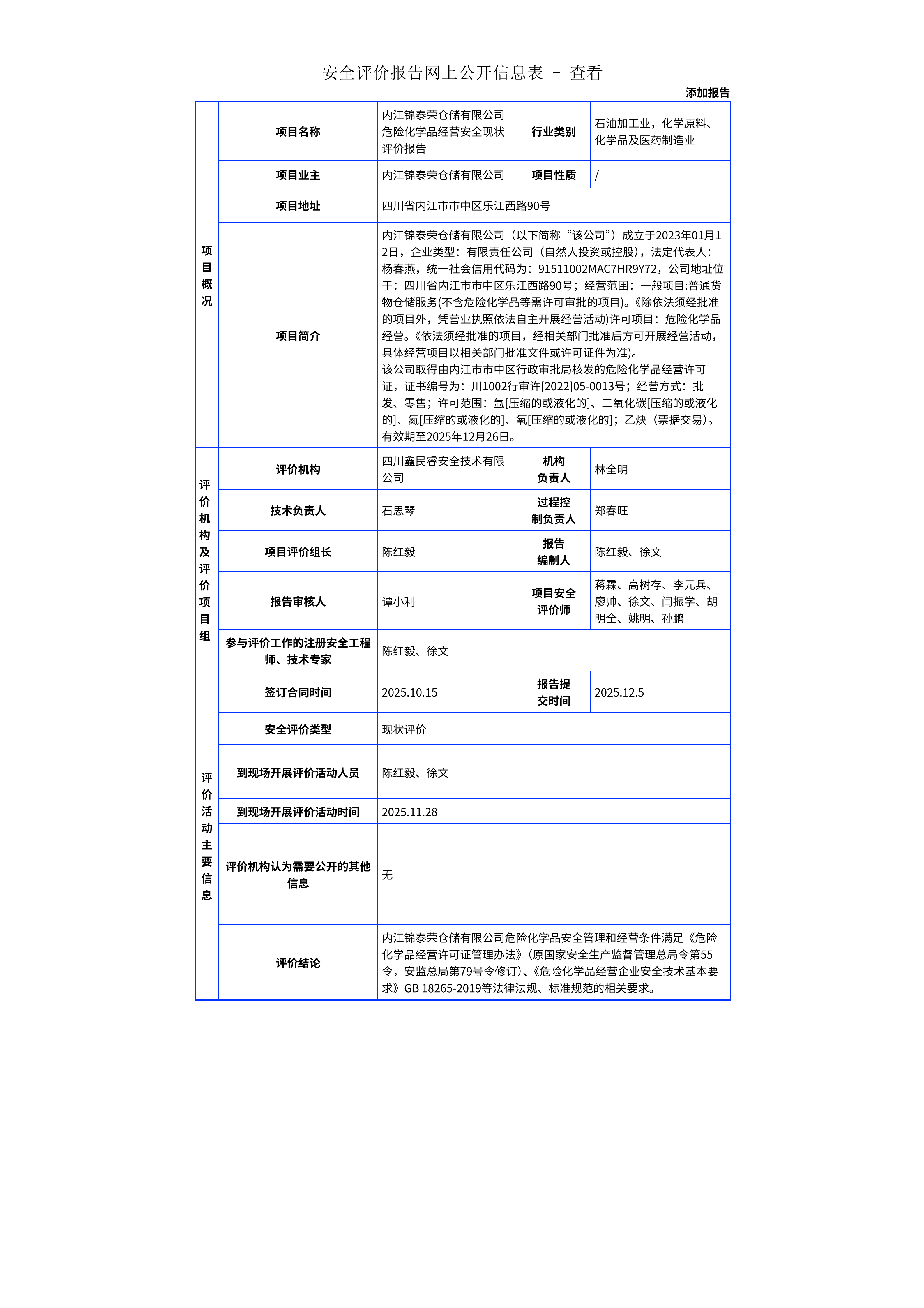 328内江锦泰荣仓储有限公司危险化学品经营安全现状评价报告