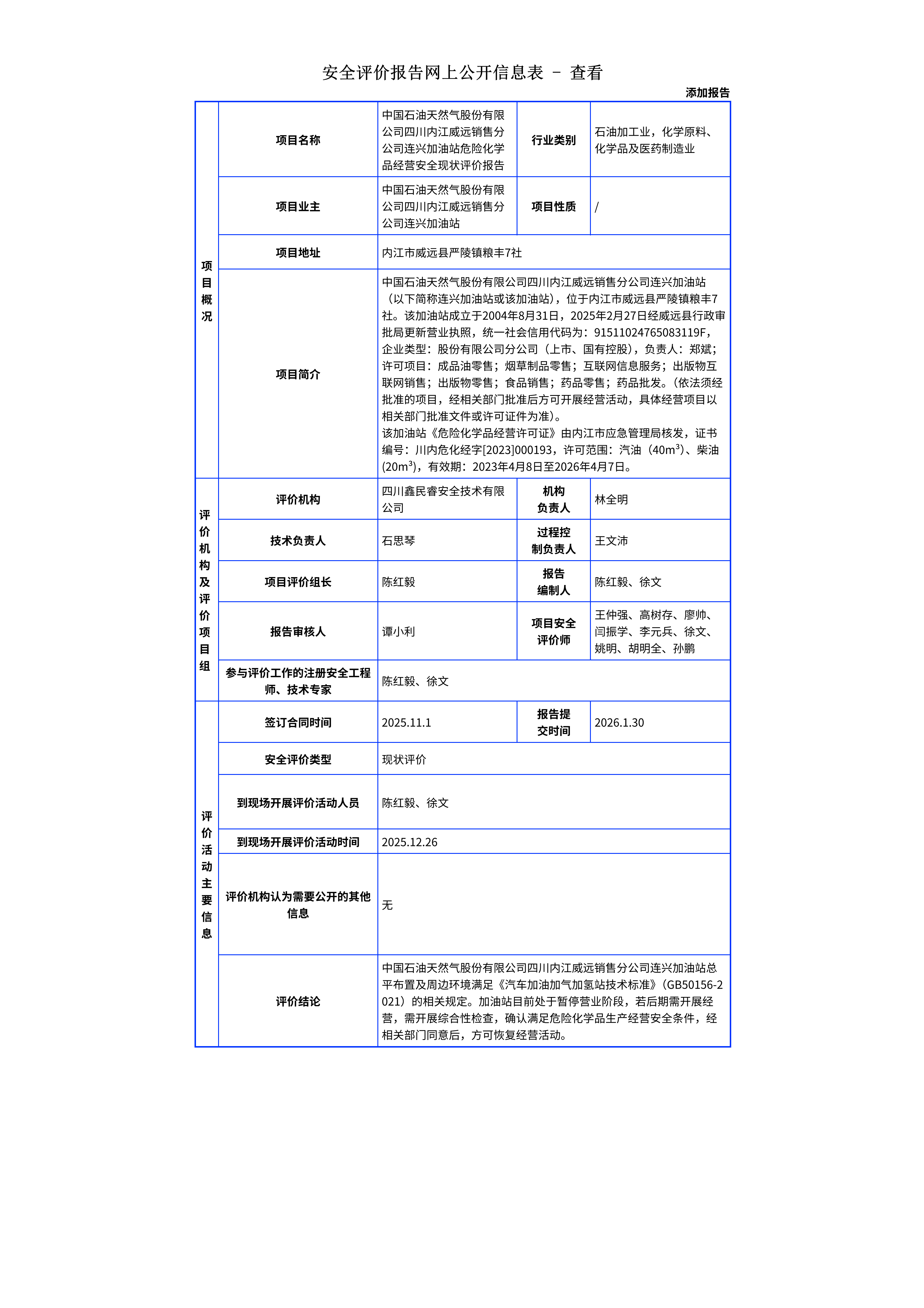 352中国石油天然气股份有限公司四川内江威远销售分公司连兴加油站危险化学品经营安全现状评价报告