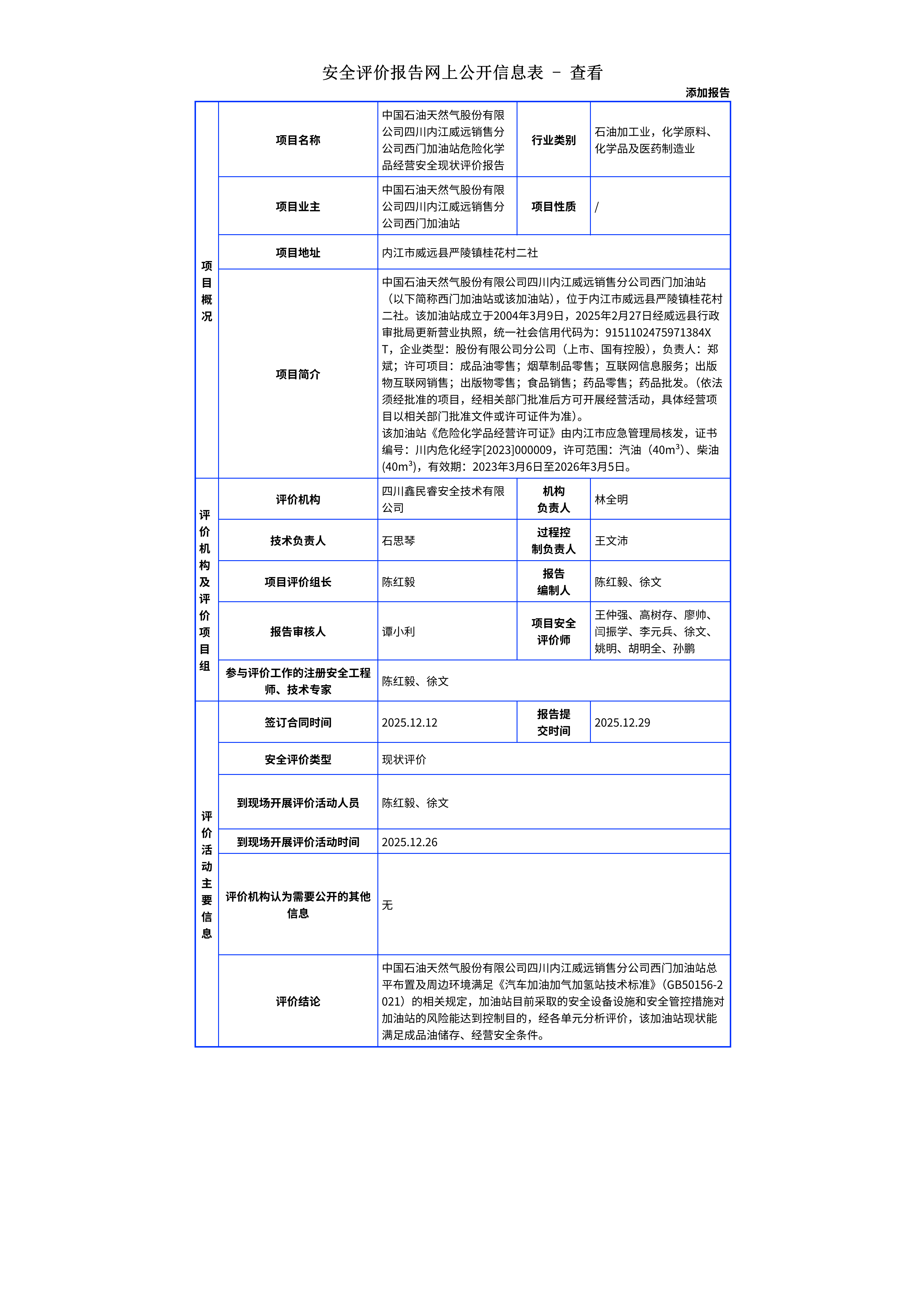 353中国石油天然气股份有限公司四川内江威远销售分公司西门加油站危险化学品经营安全现状评价报告